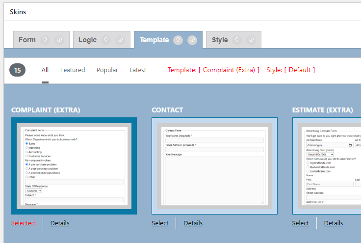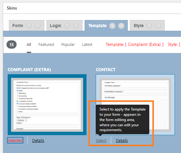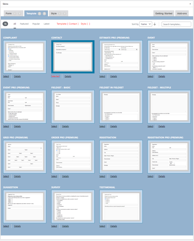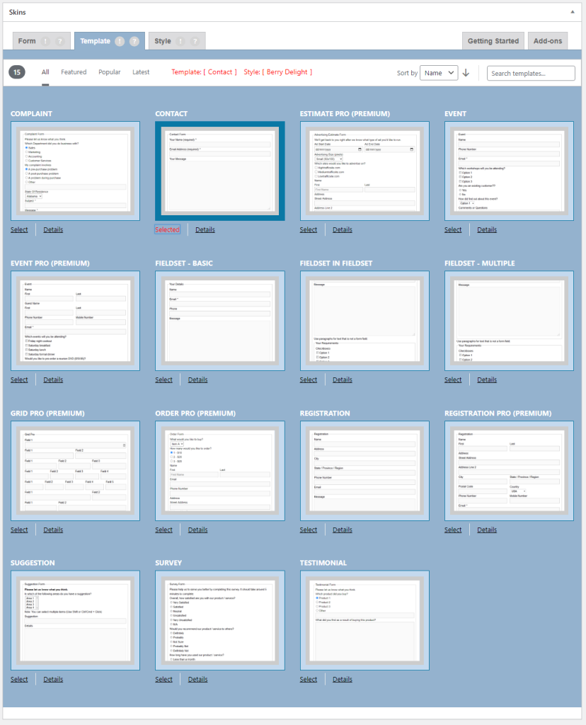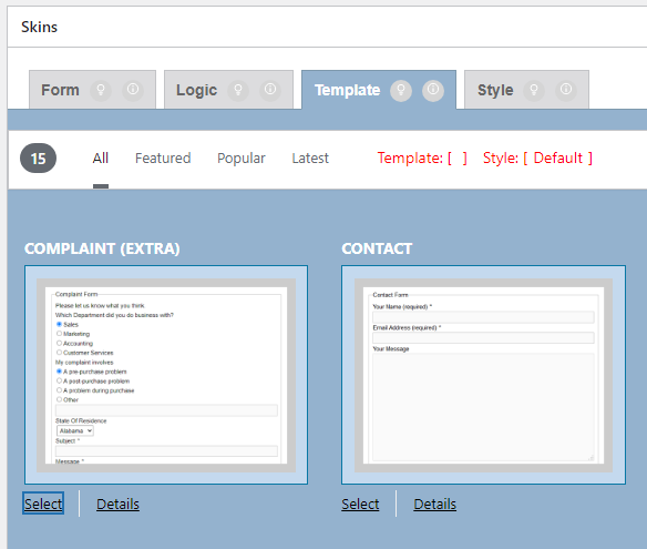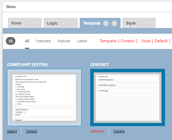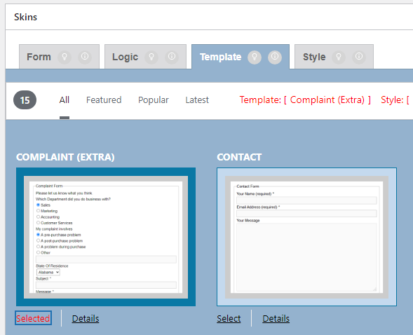 After clicking on “Select” button of different template, the button changes to “Selected”