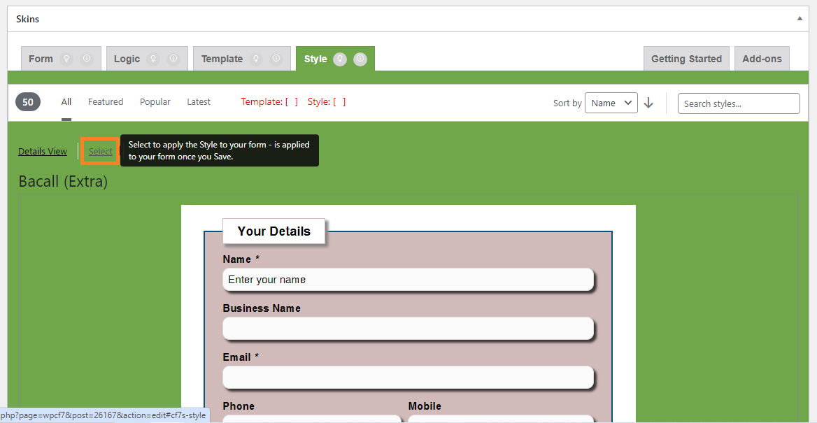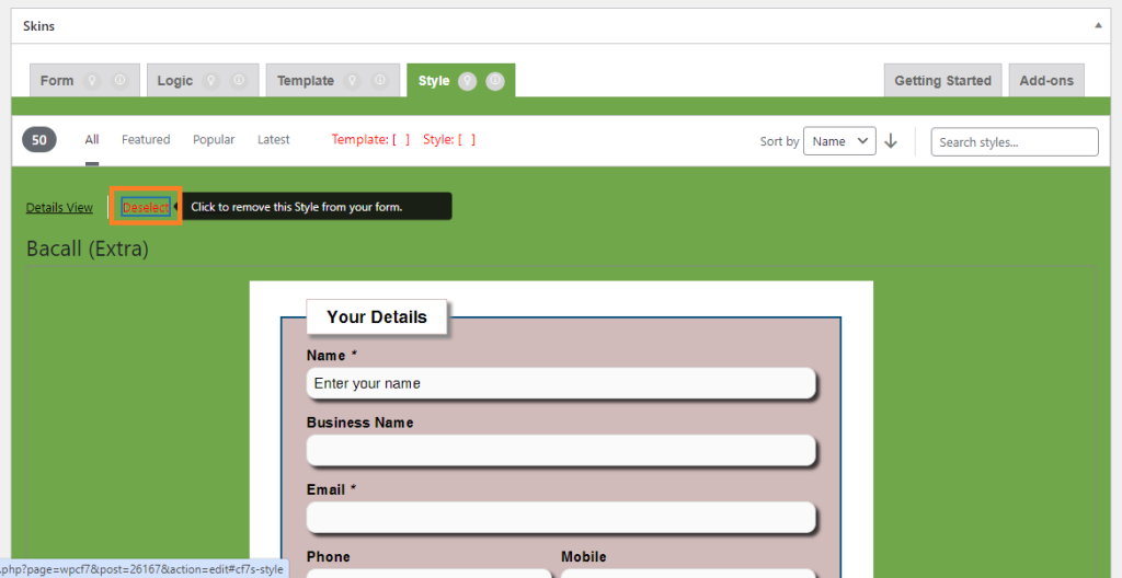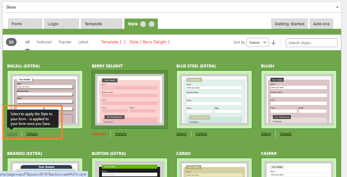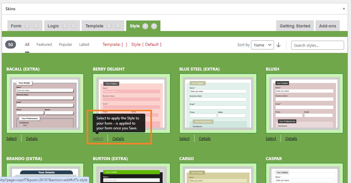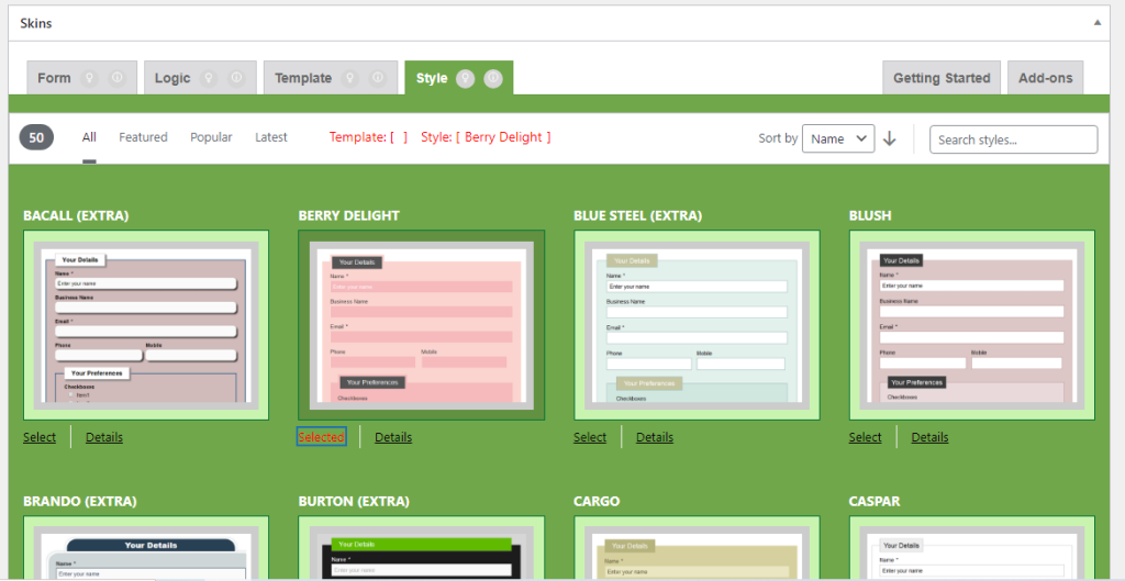 After clicking on “Select” button of different template, the button changes to “Selected”