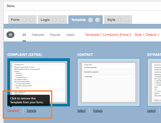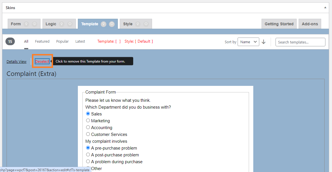 The previously selected template’s “Seleted” button changes to “Select”