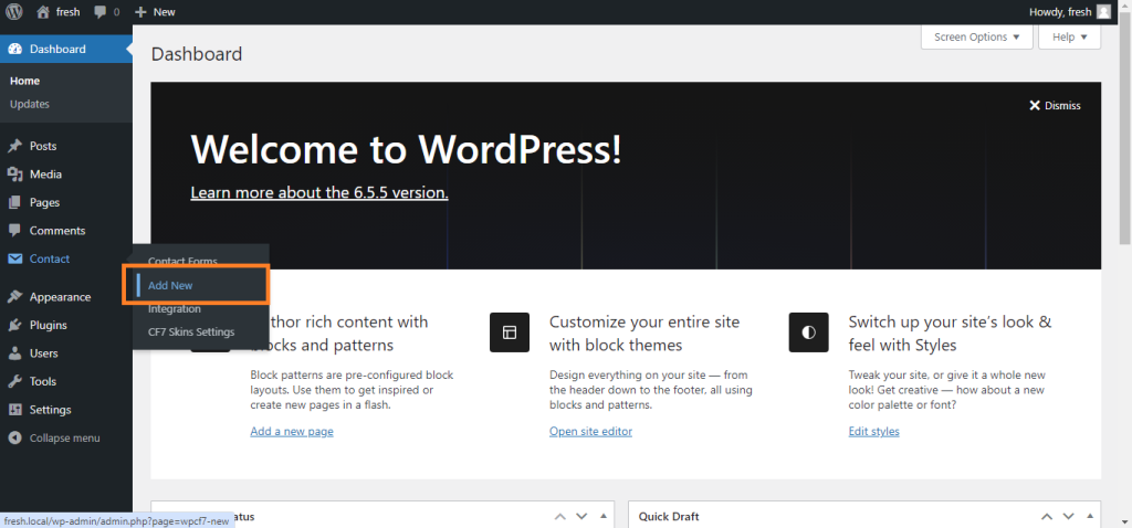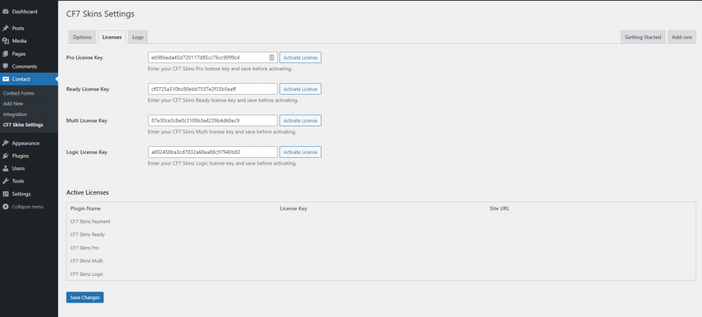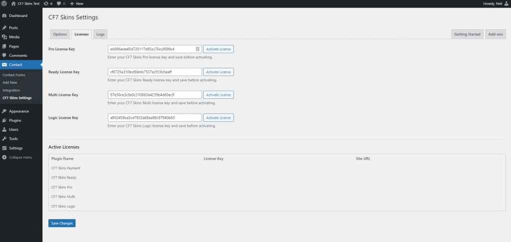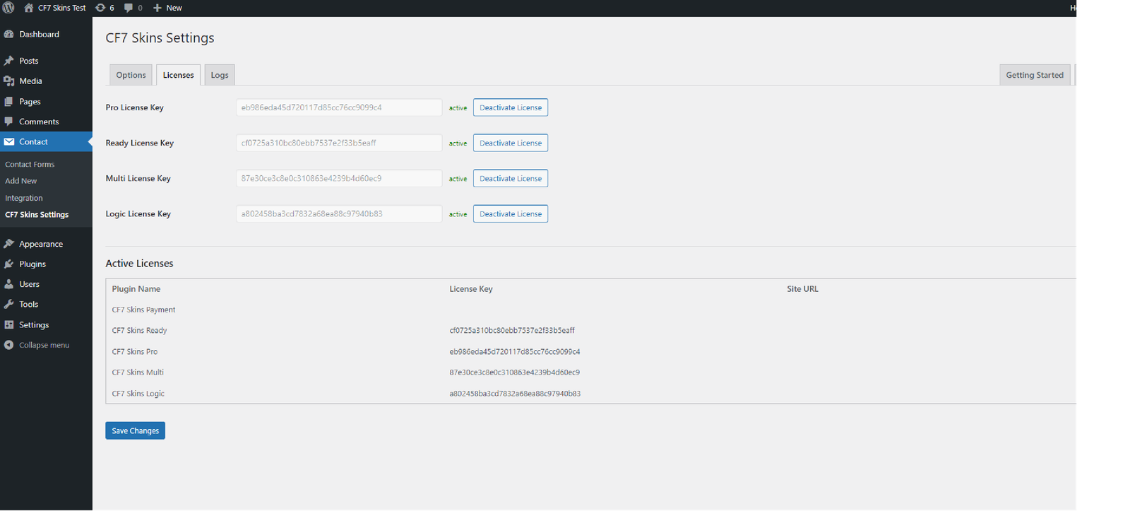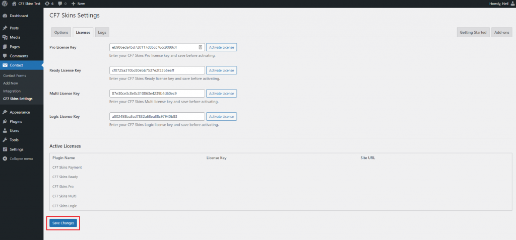 NOTE: In testing this action we are concerned with what happens when we use the Save button in the CF7 Area. Using the Save Visual button is documented as a separate action.