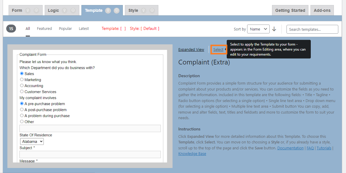 Template Selected (06_Template Selected -Template Tab_V2.7.0_commit-2f4d7d2_2024-07-31.png)Clicking Select on Different Template (07_Clicking Select on Different Template – Template Tab_V2.7.0_commit-2f4d7d2_2024-07-31.png)Clicked on Select of Different Template (08_Clicked Select on Different Template – Template Tab_V2.7.0_commit-2f4d7d2_2024-07-31.png)