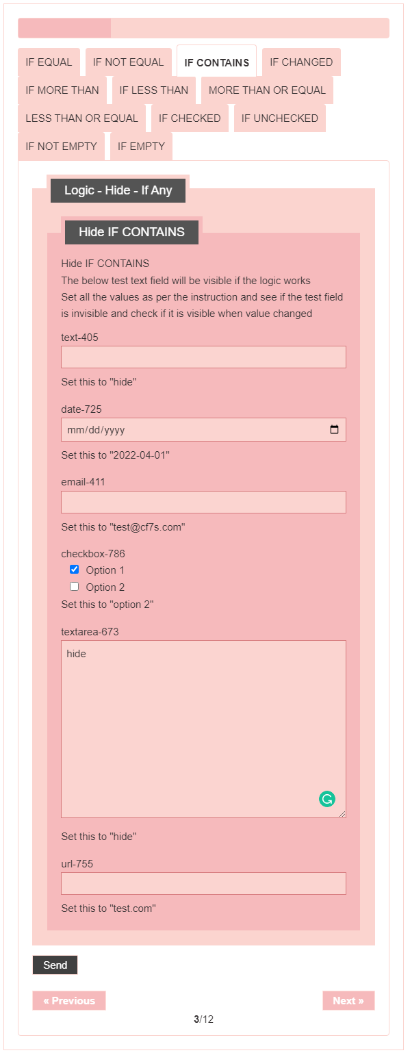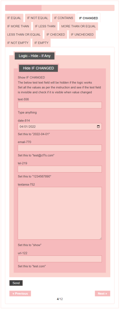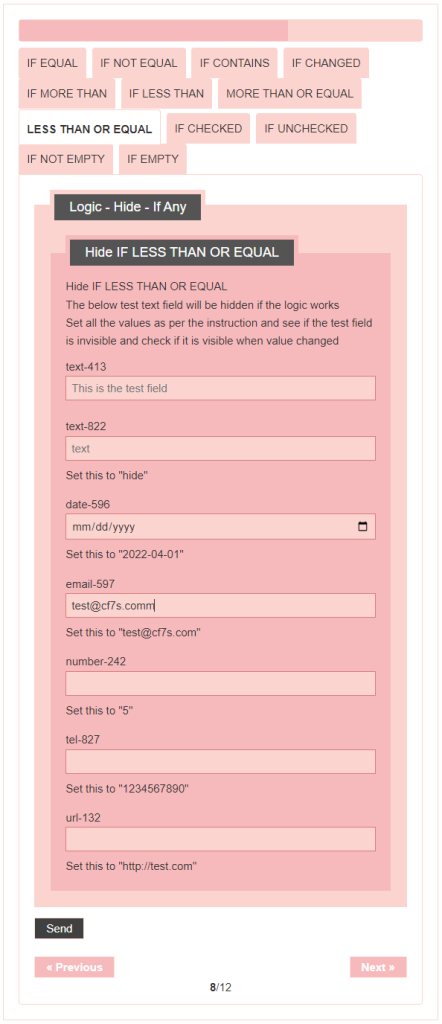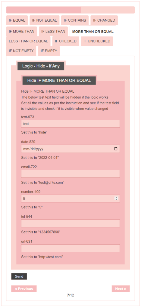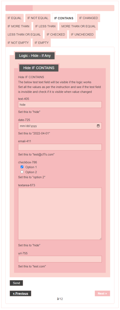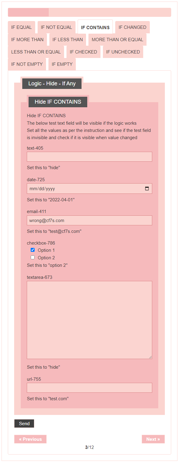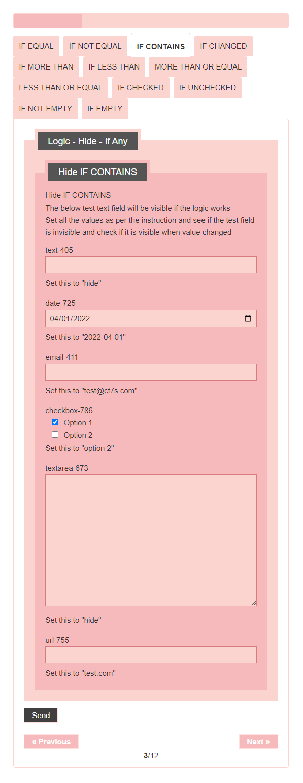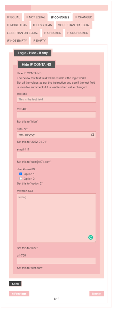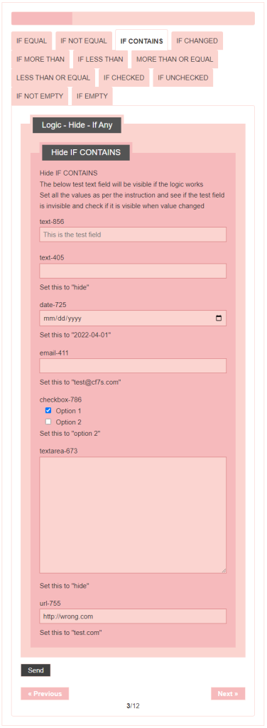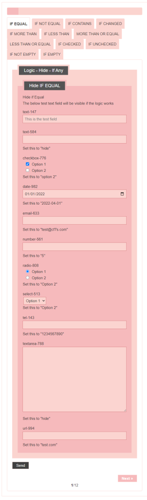 - Logic – testing CF7 Skins Logic (both Backend & Frontend)