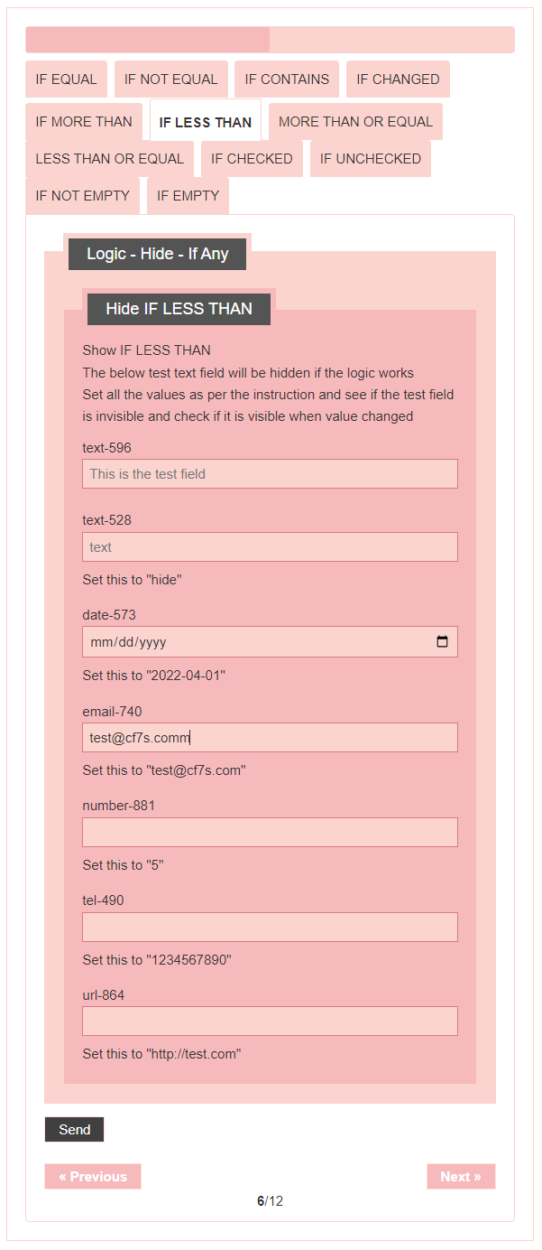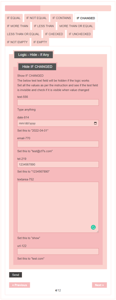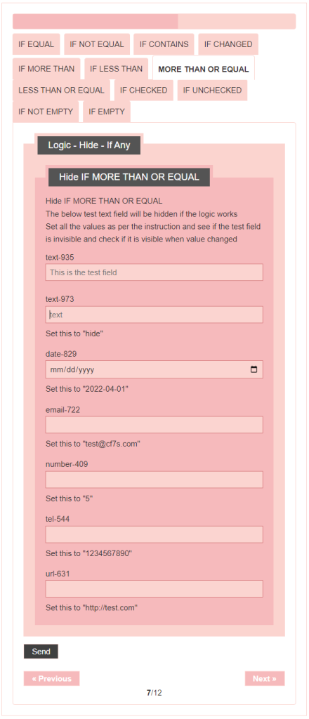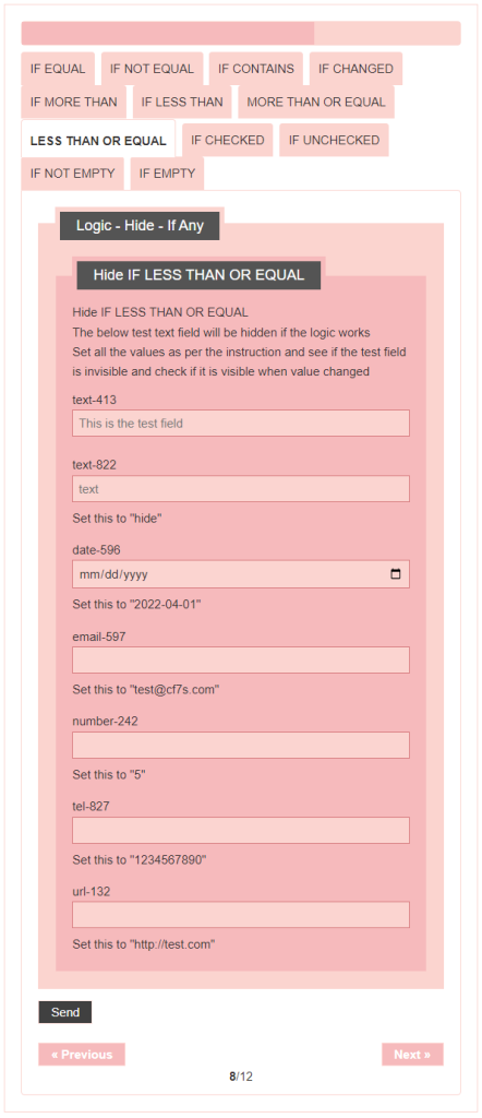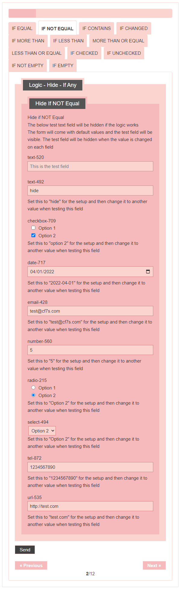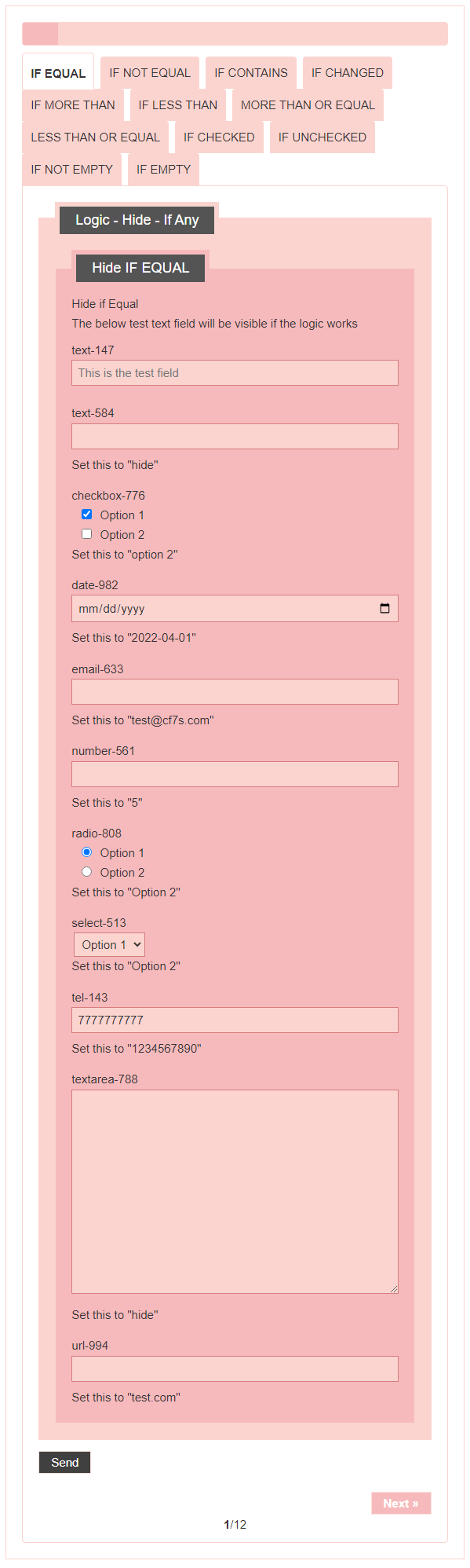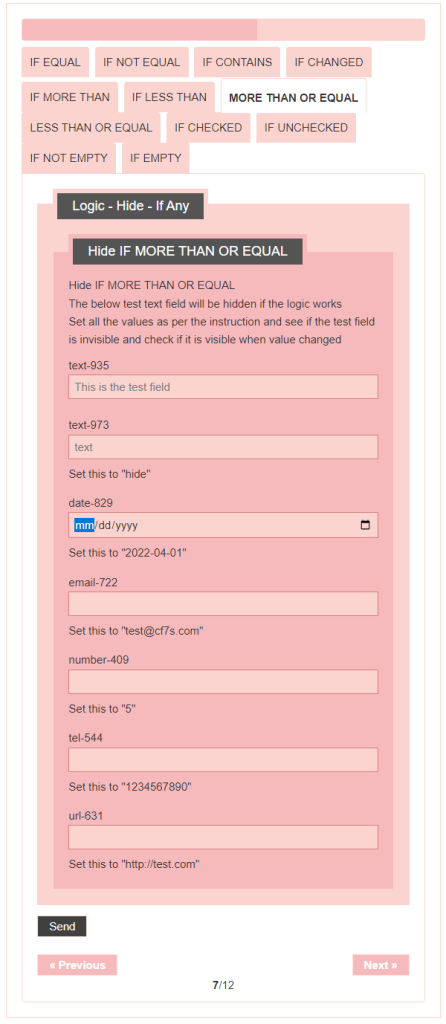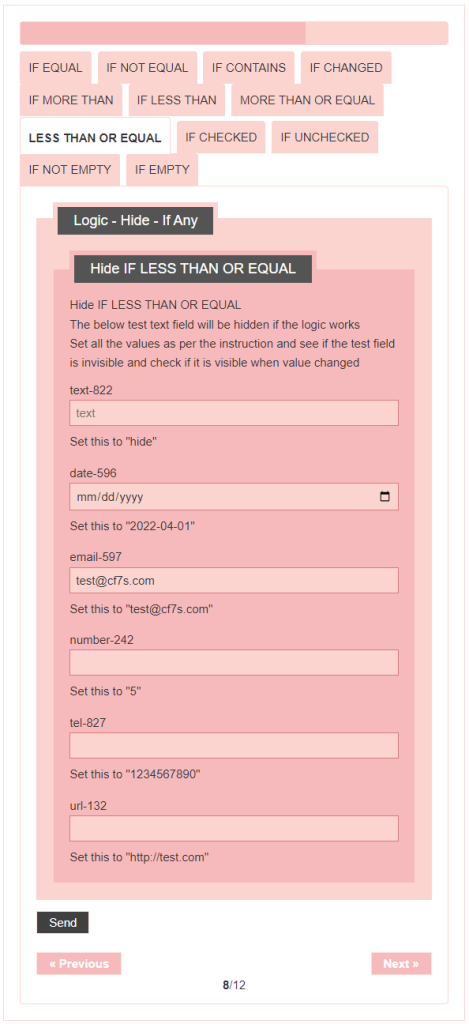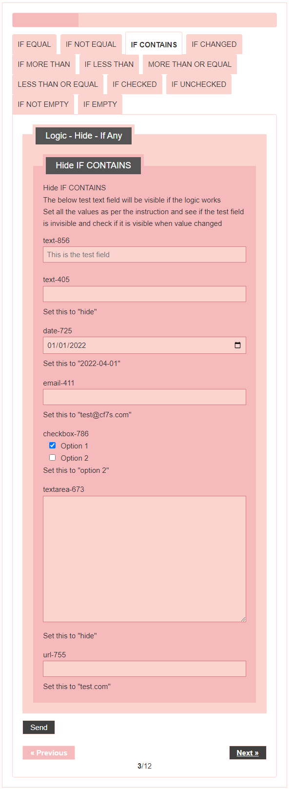 - Logic – testing CF7 Skins Logic (both Backend & Frontend)