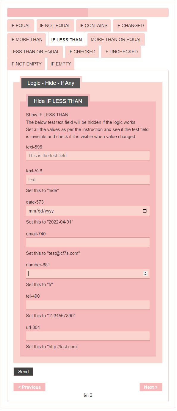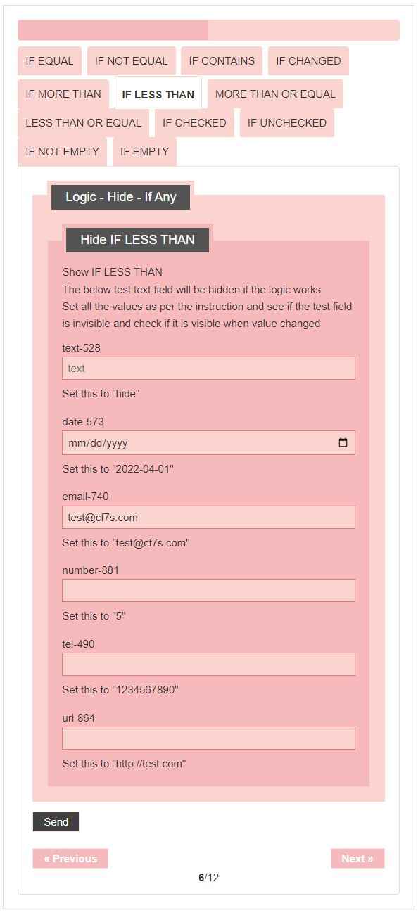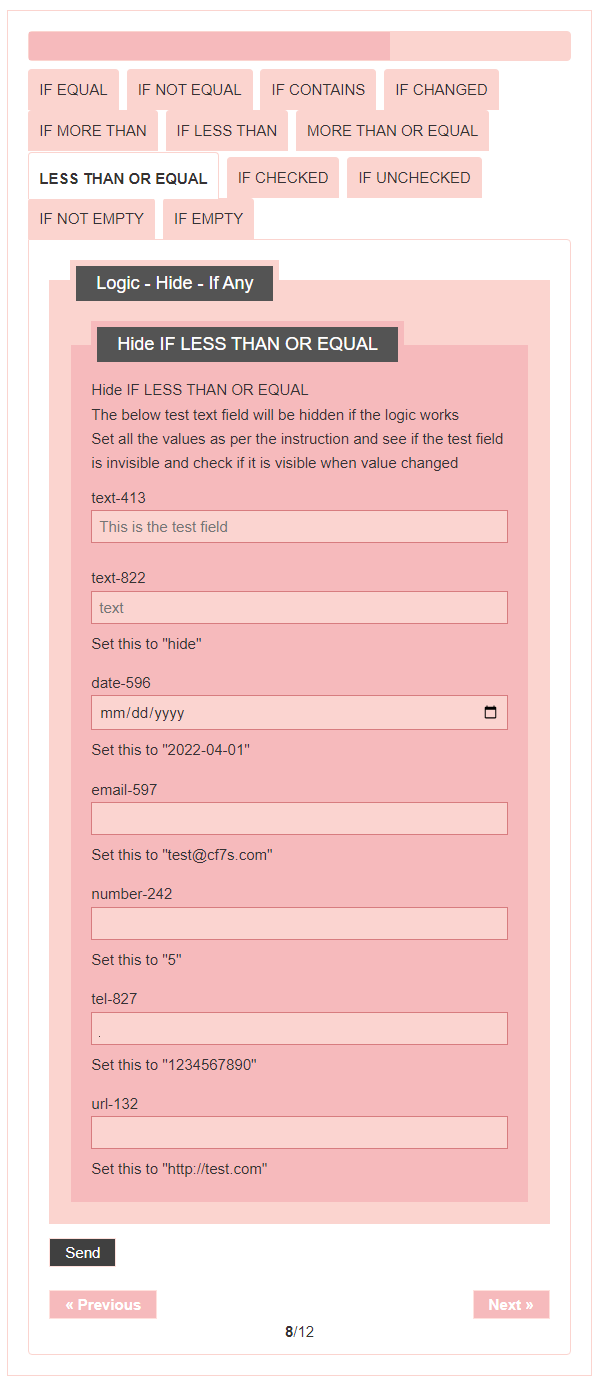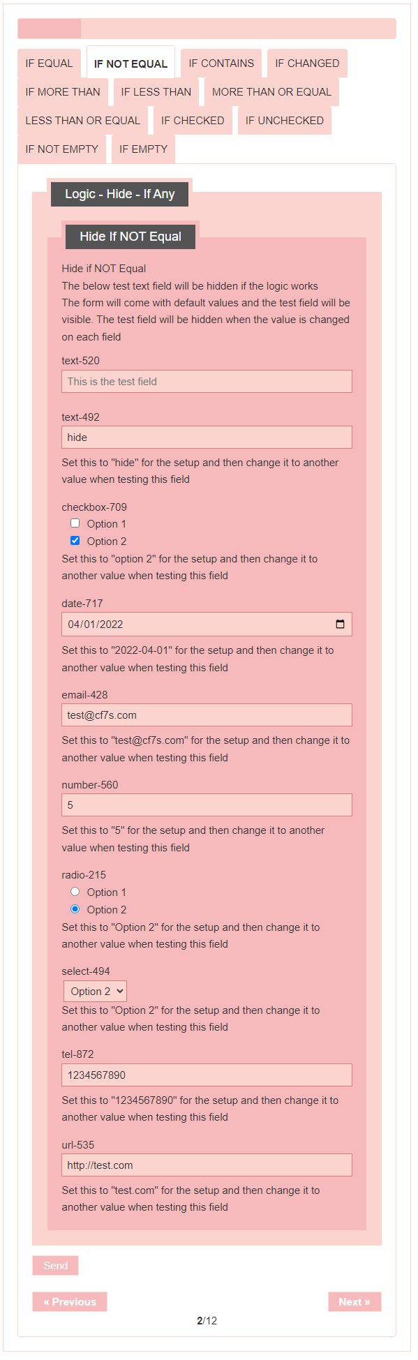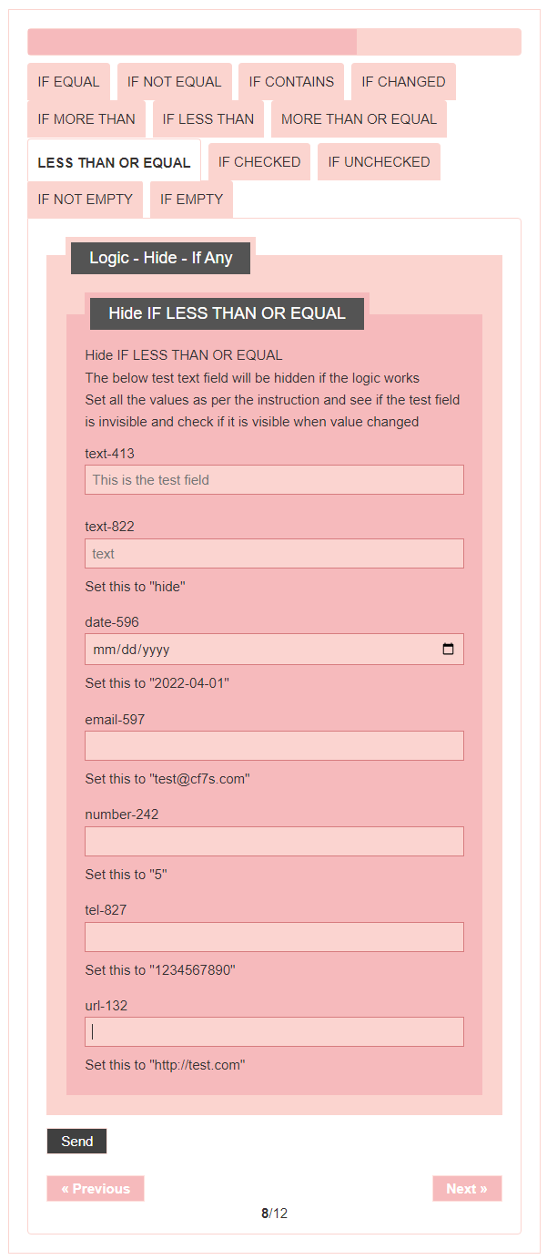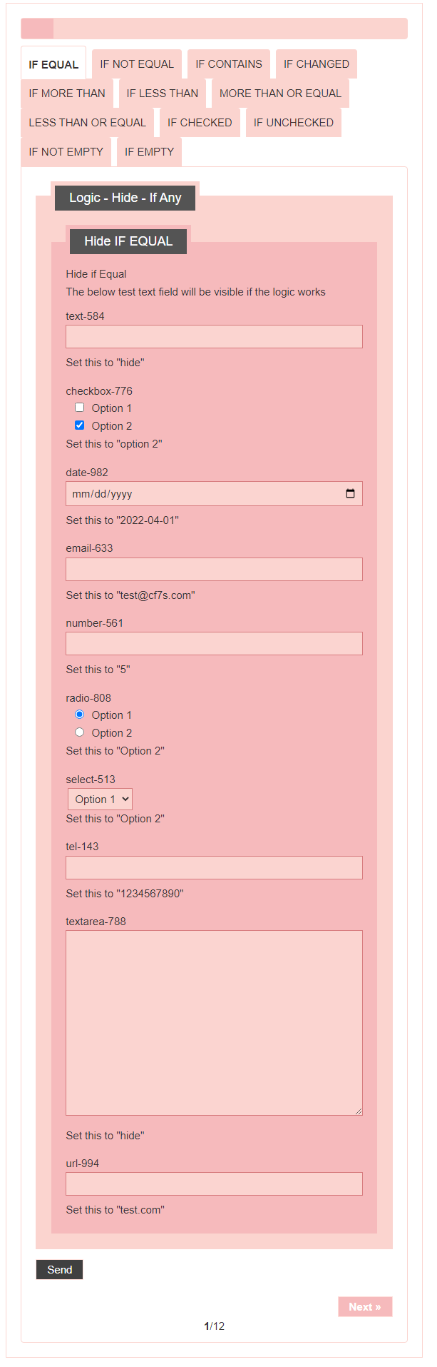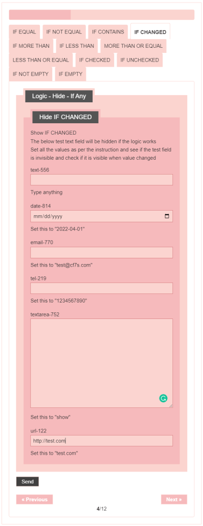 - Logic – testing CF7 Skins Logic (both Backend & Frontend)