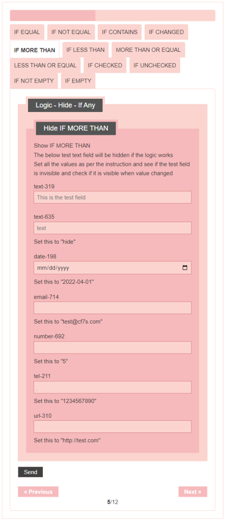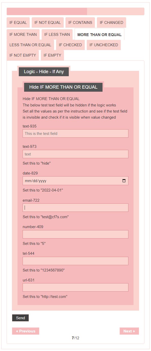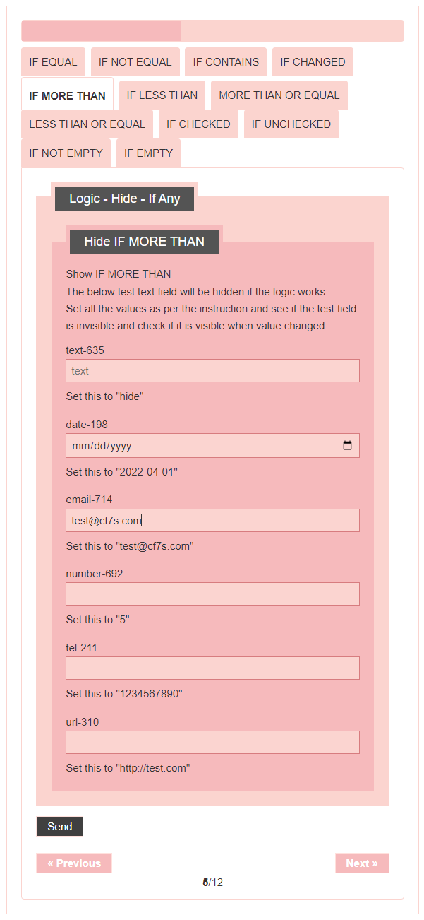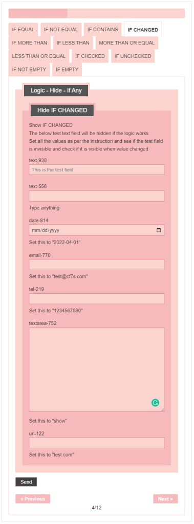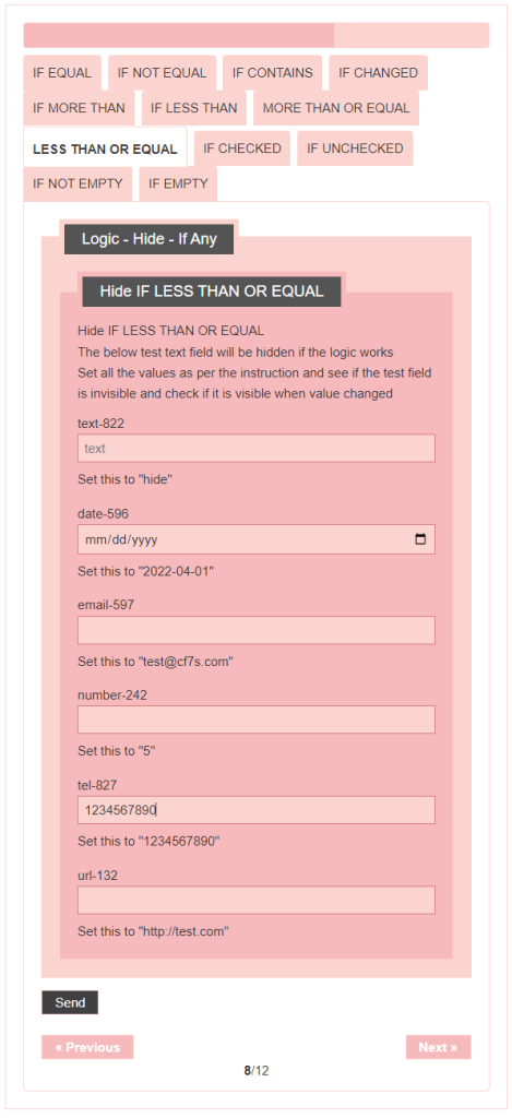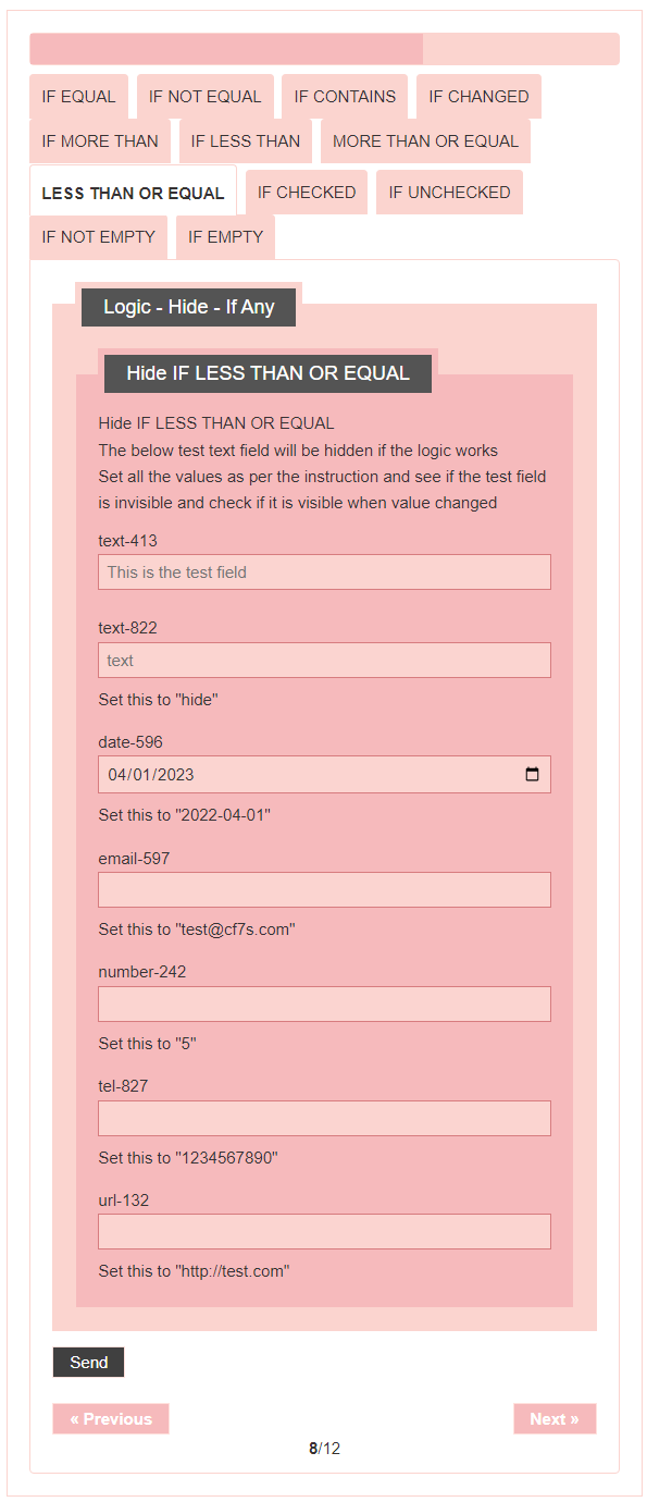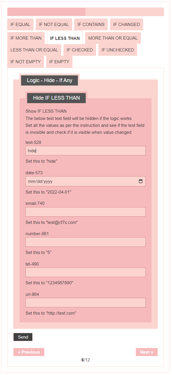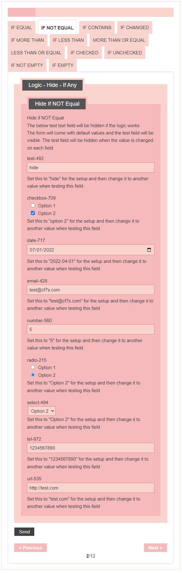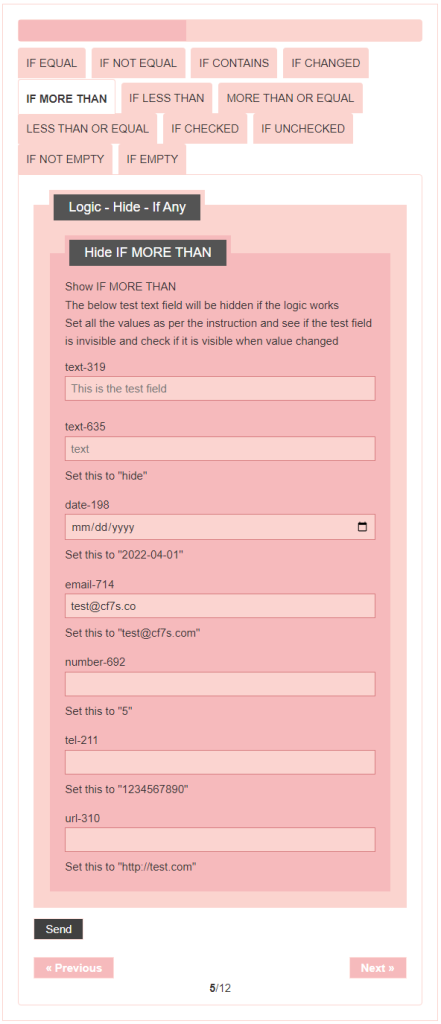 - Logic – testing CF7 Skins Logic (both Backend & Frontend)