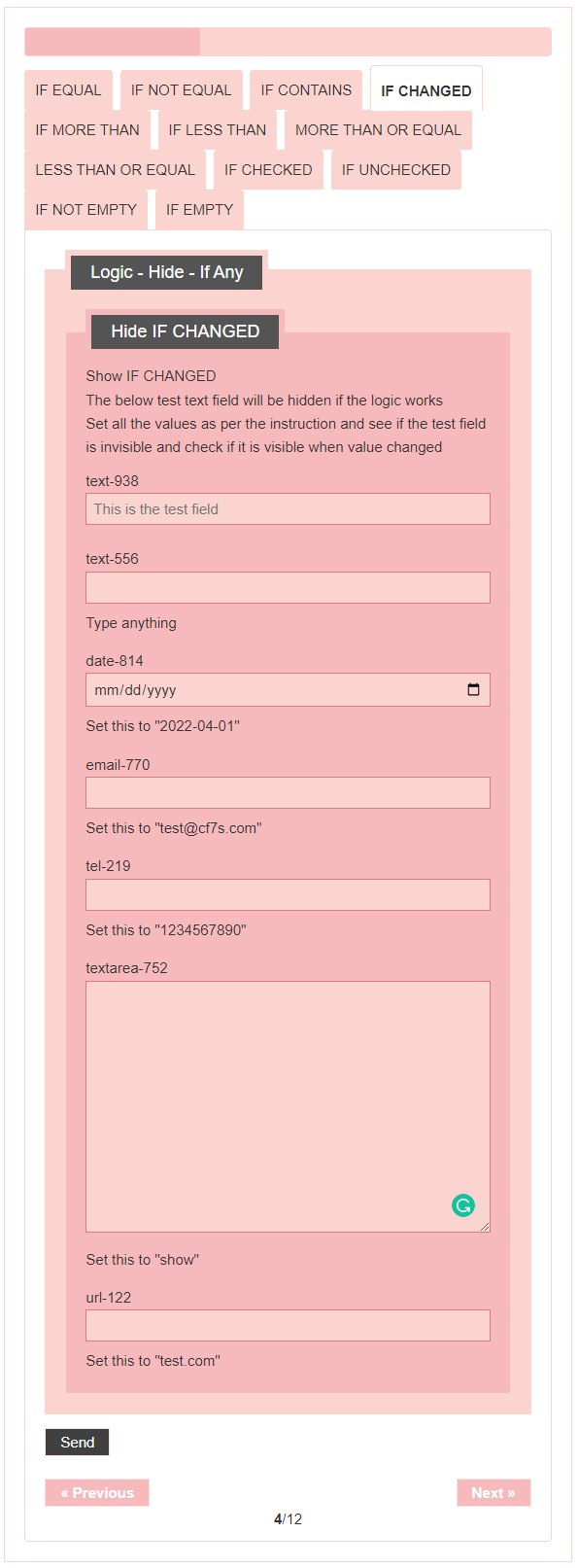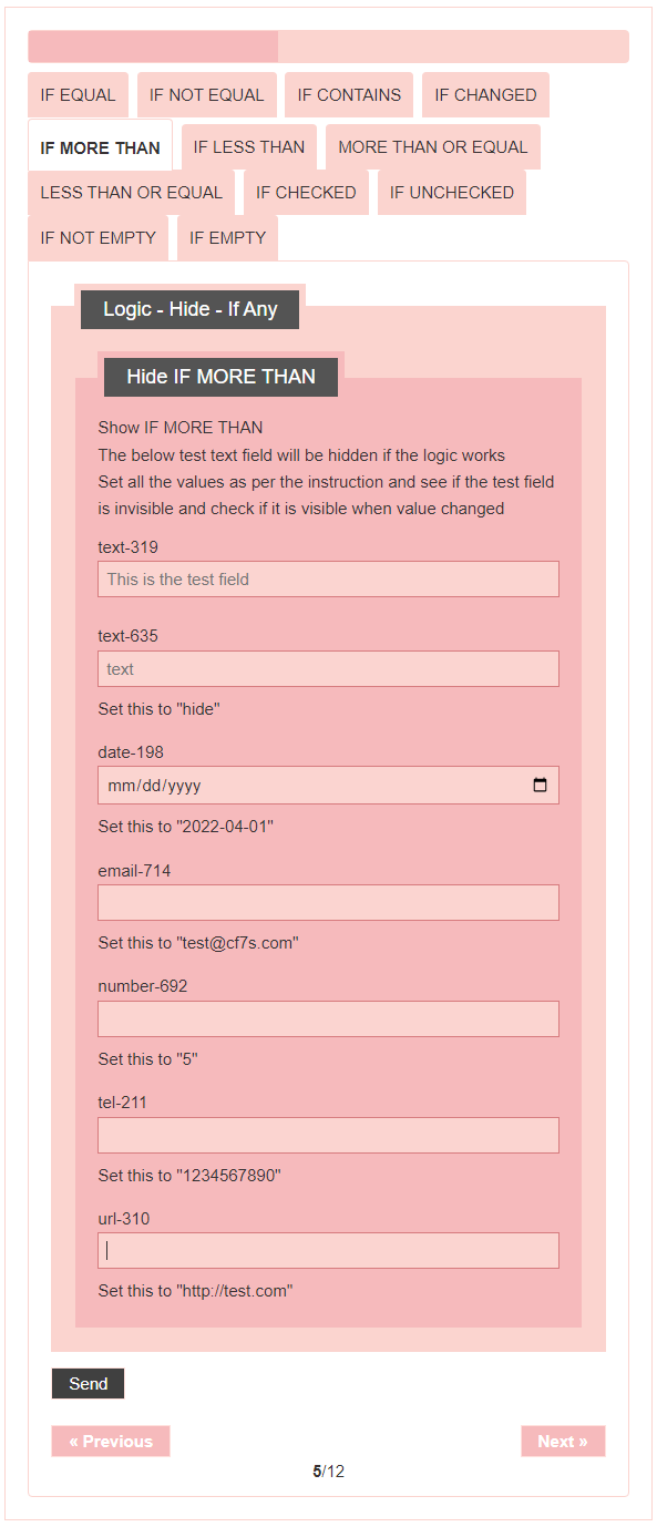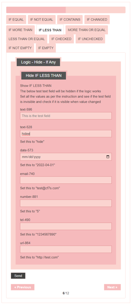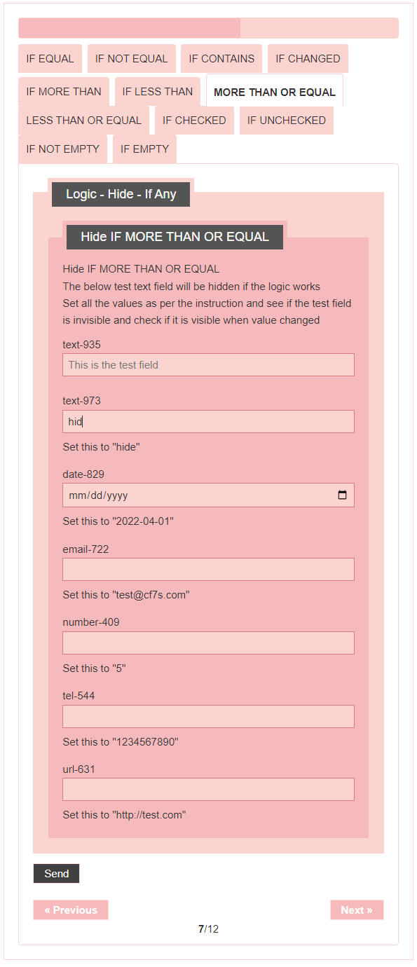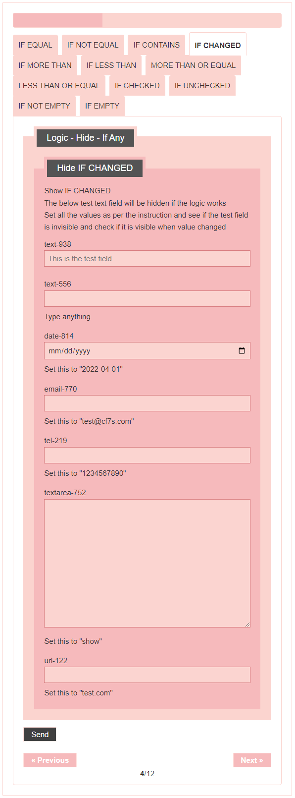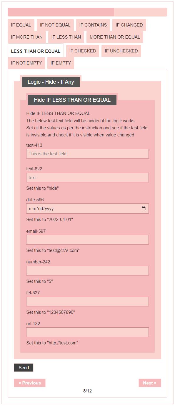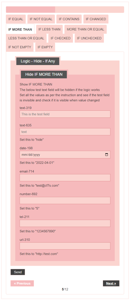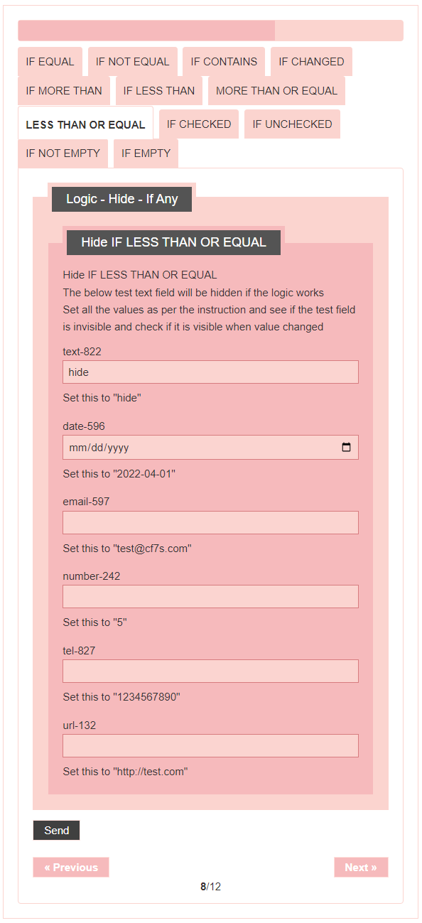 - Logic – testing CF7 Skins Logic (both Backend & Frontend)