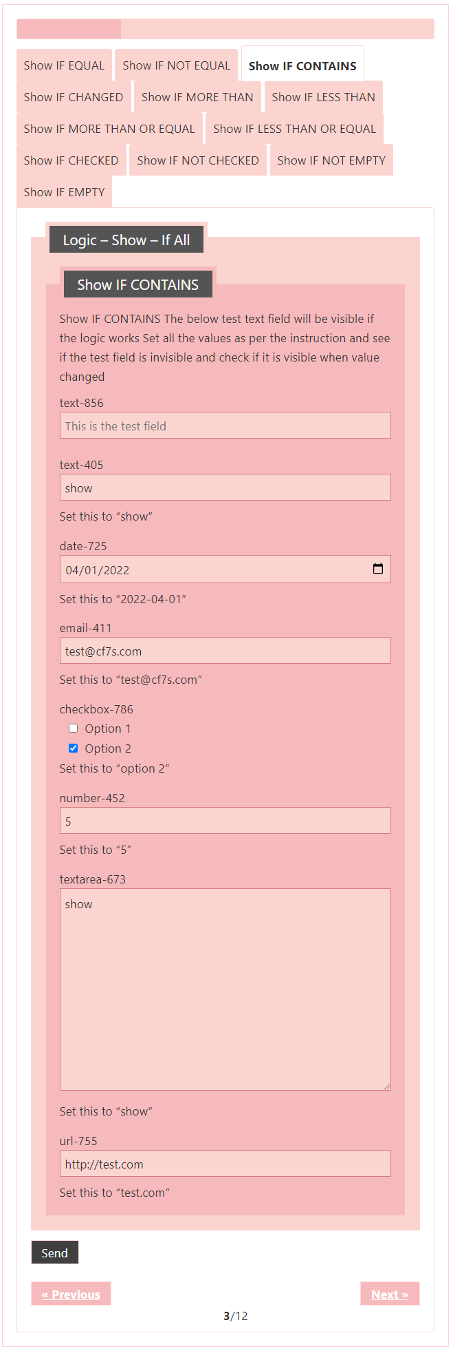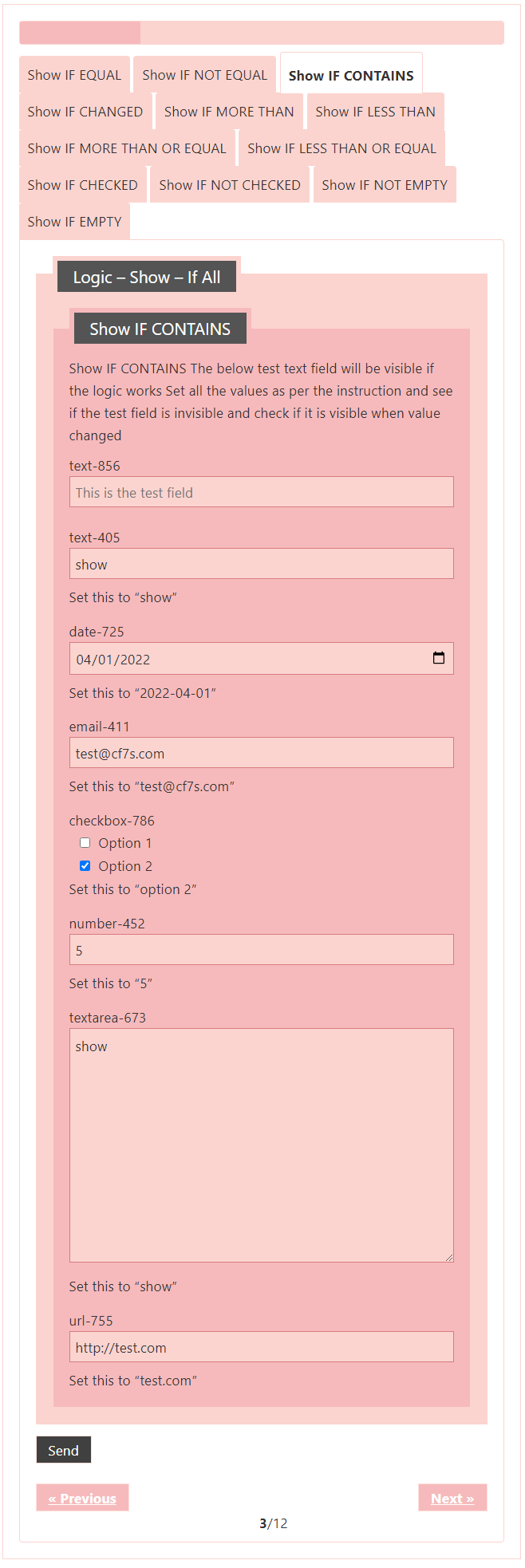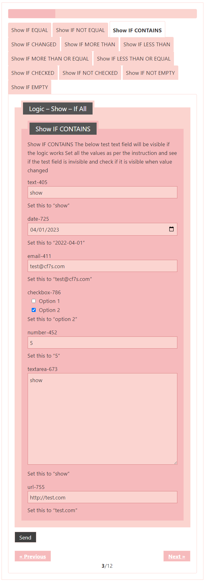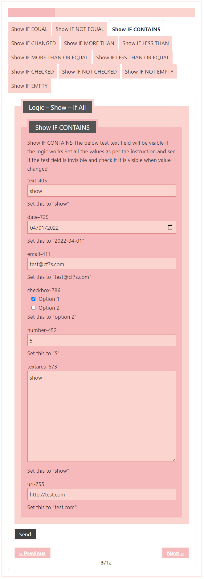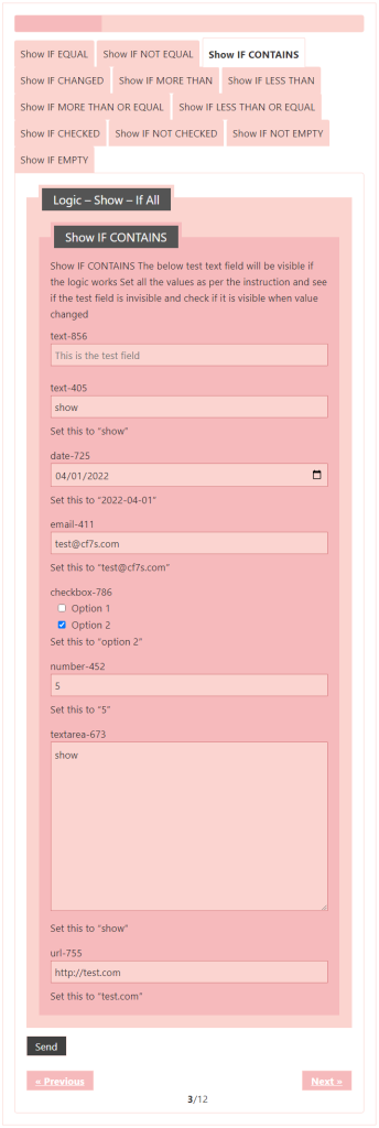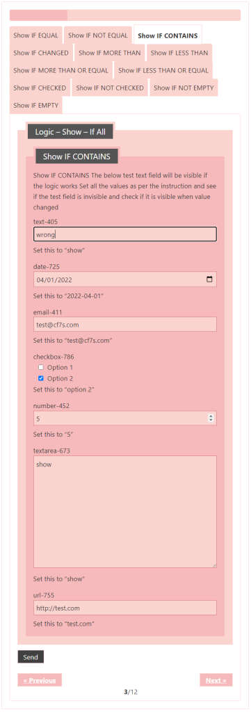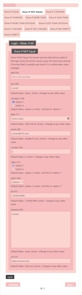 Logic – testing CF7 Skins Logic (both Backend & Frontend)