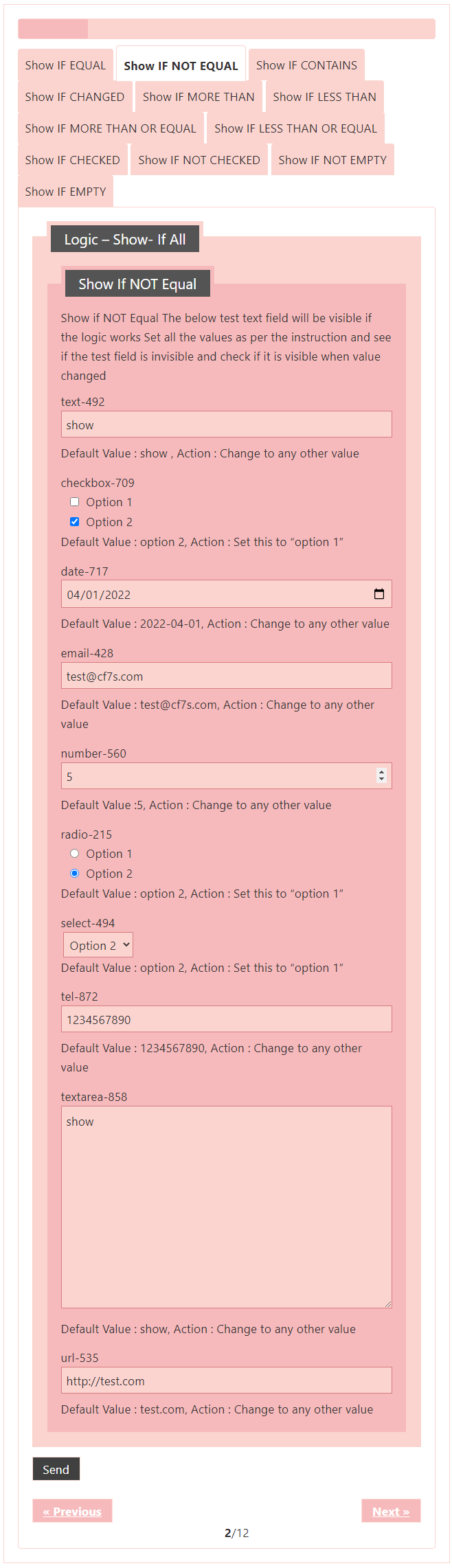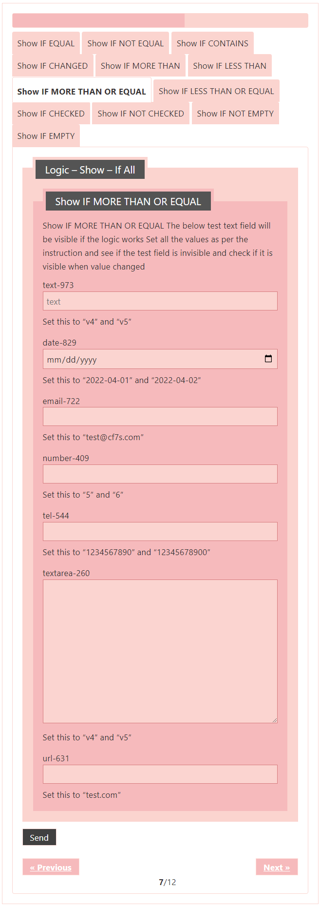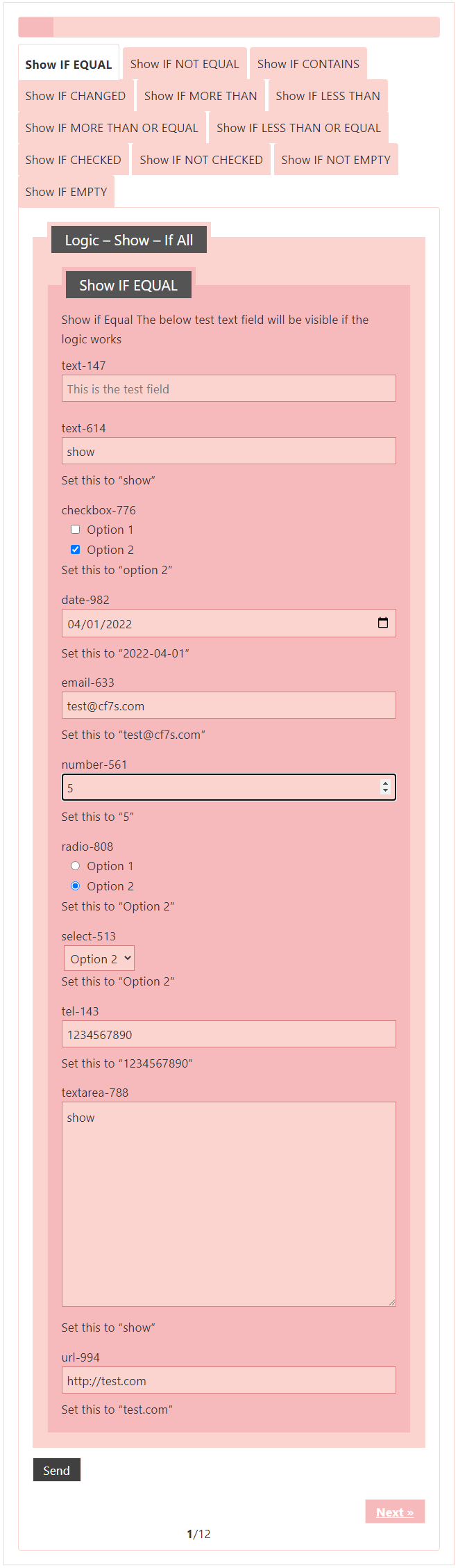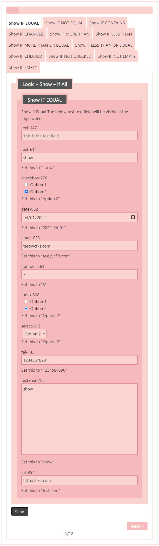 Logic – testing CF7 Skins Logic (both Backend & Frontend)