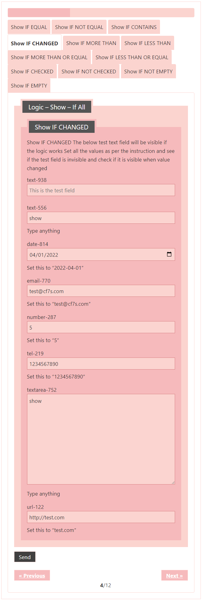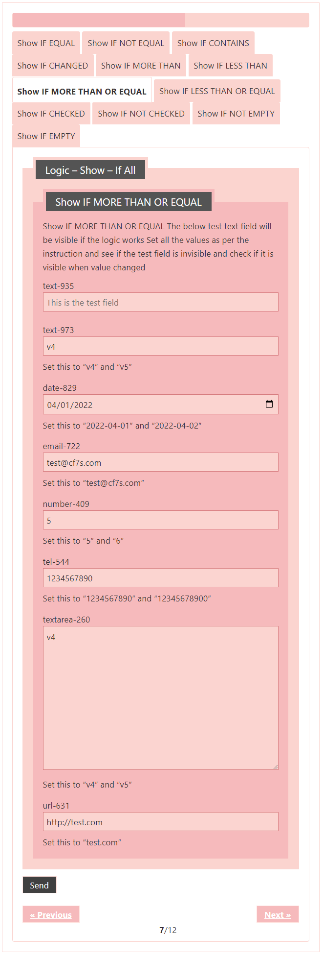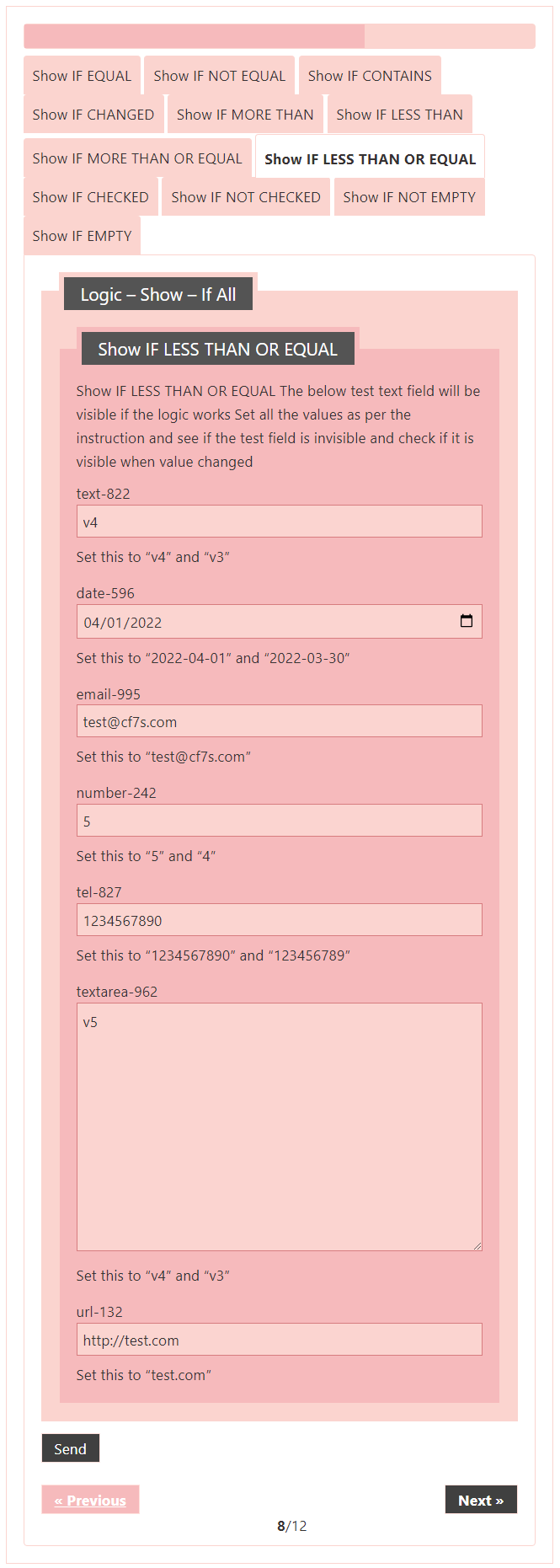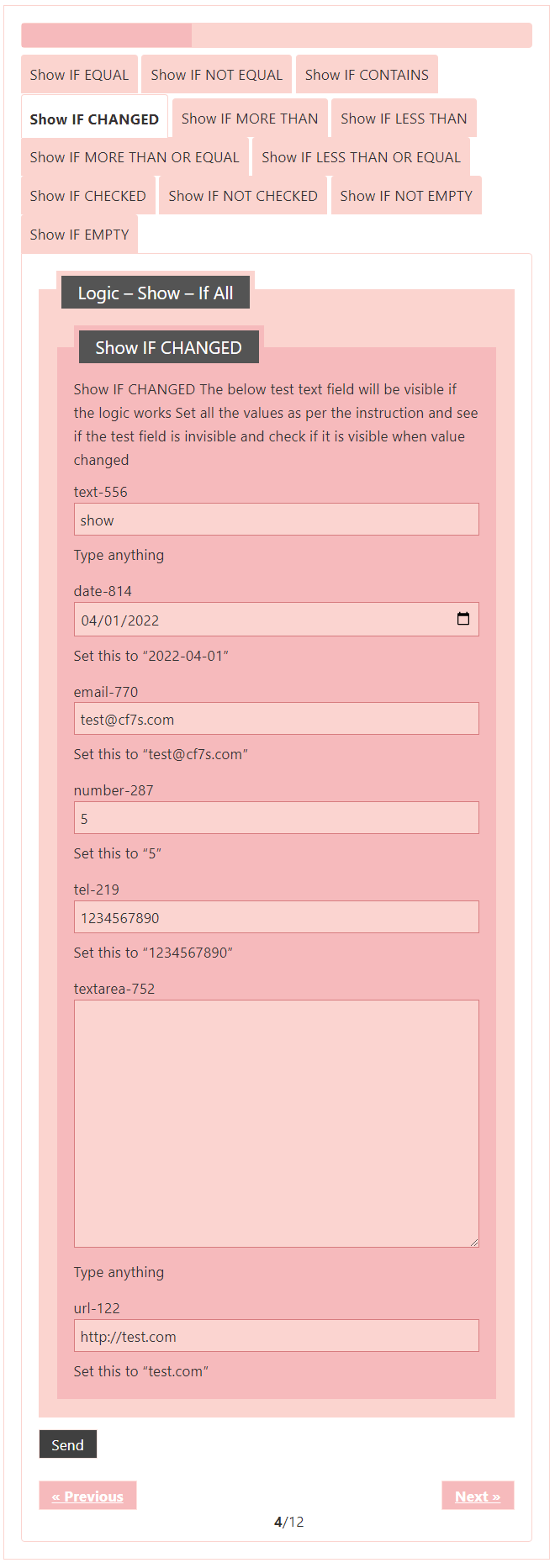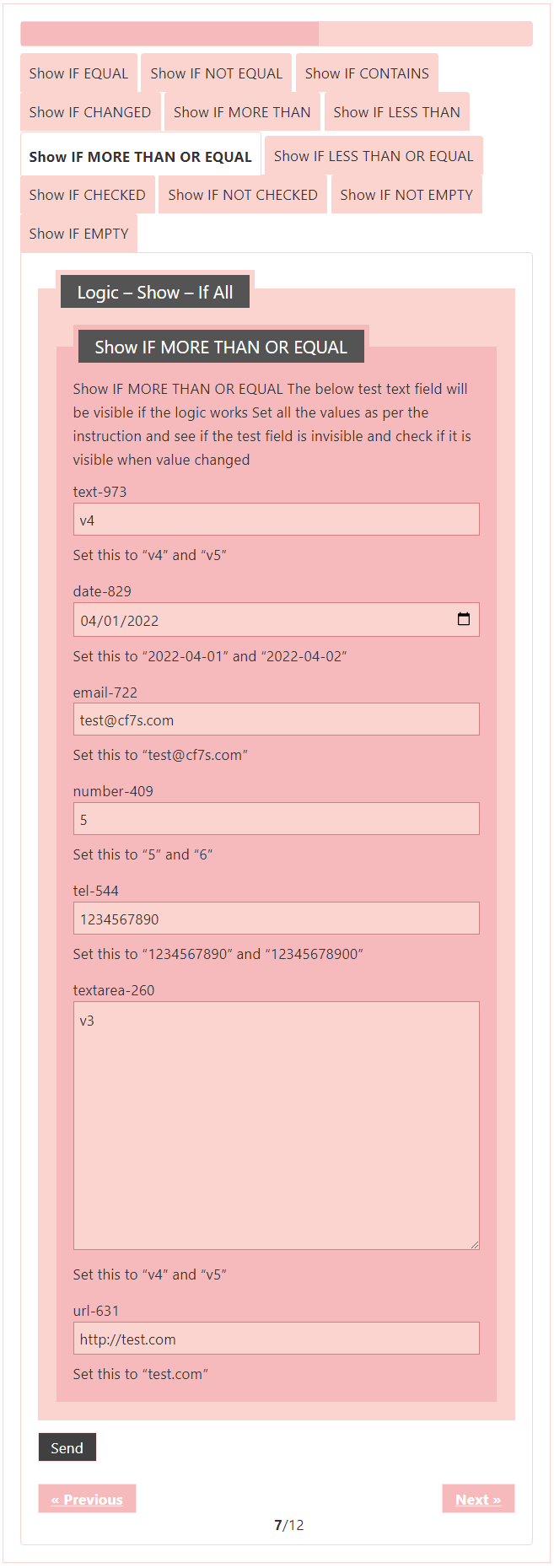 Logic – testing CF7 Skins Logic (both Backend & Frontend)