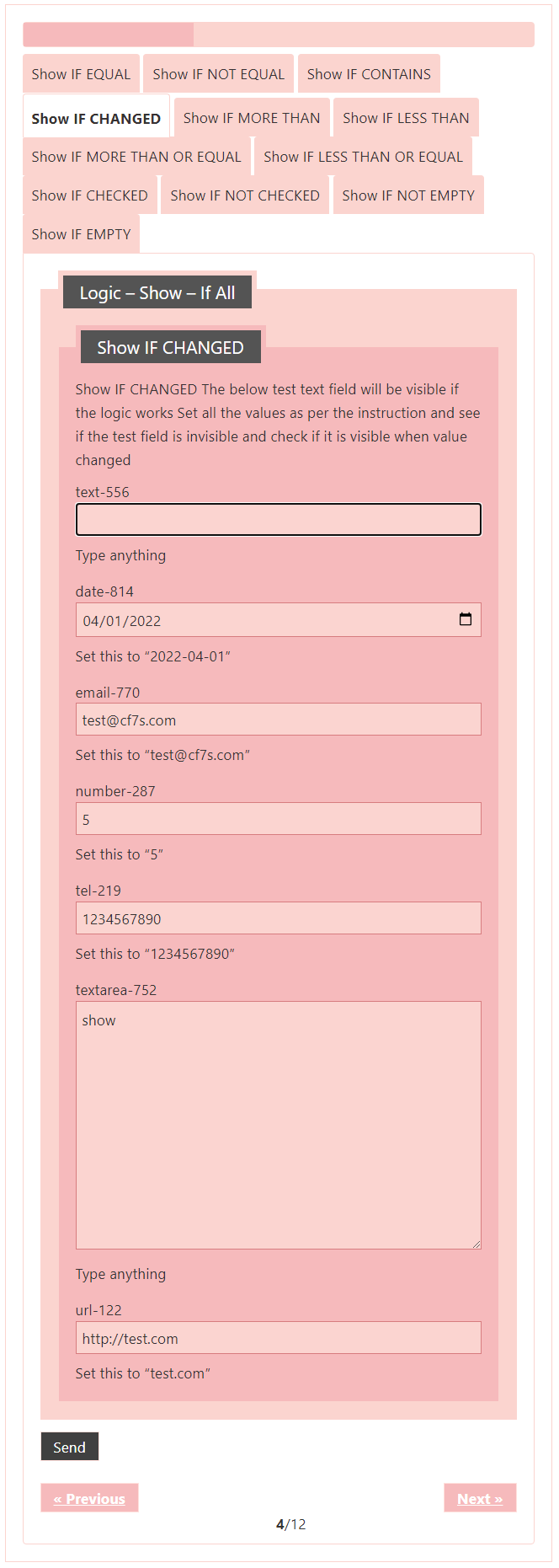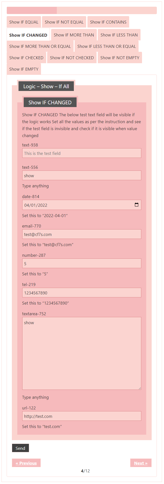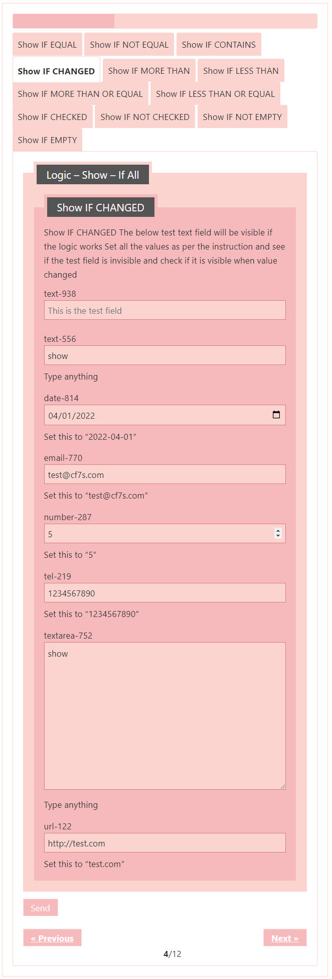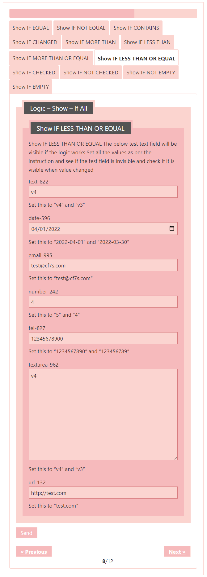 Logic – testing CF7 Skins Logic (both Backend & Frontend)