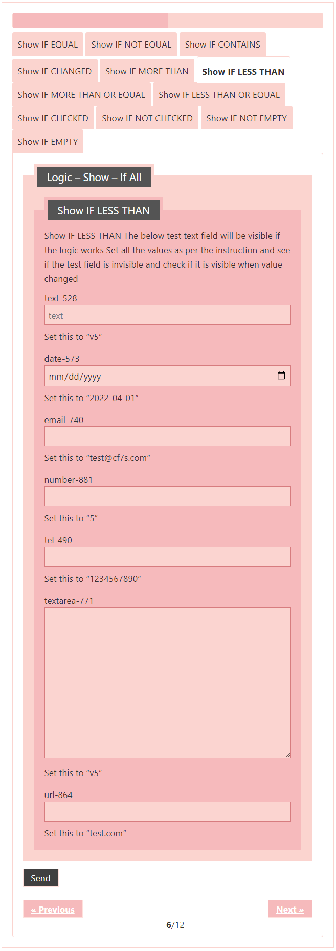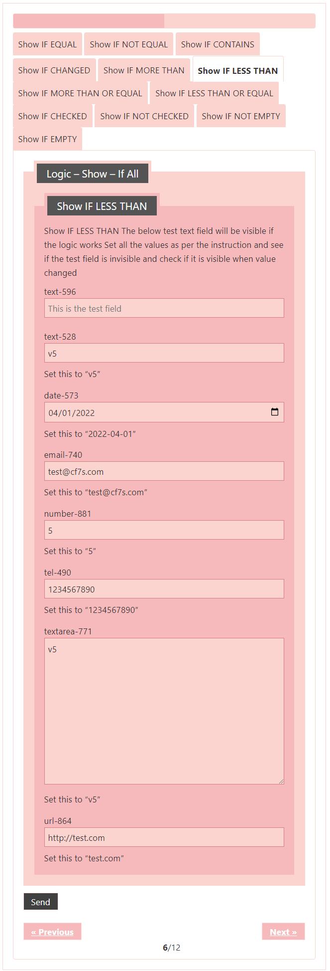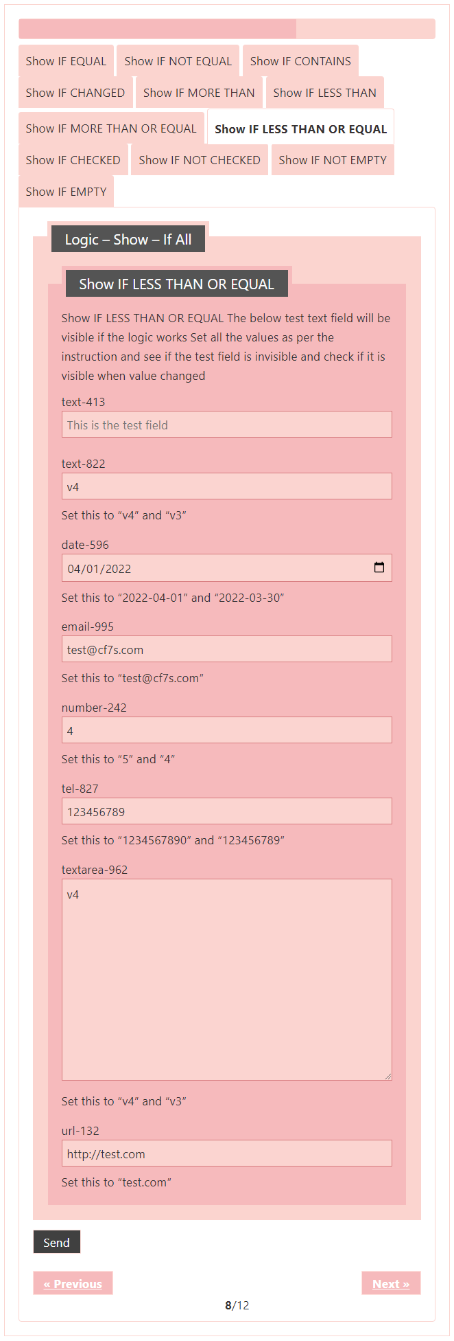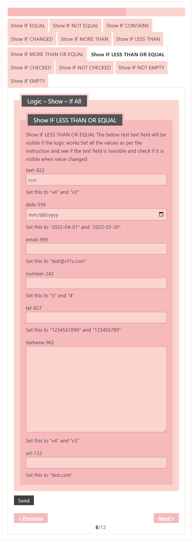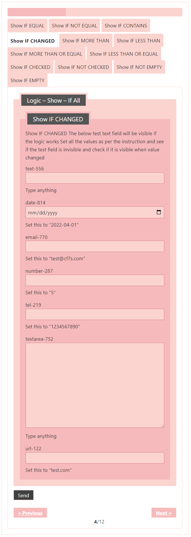 Logic – testing CF7 Skins Logic (both Backend & Frontend)