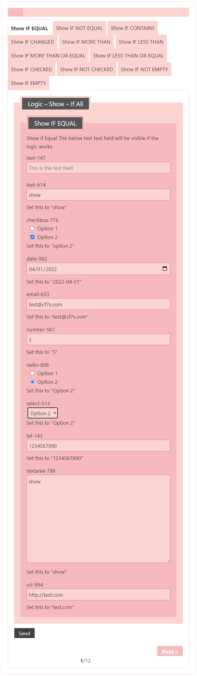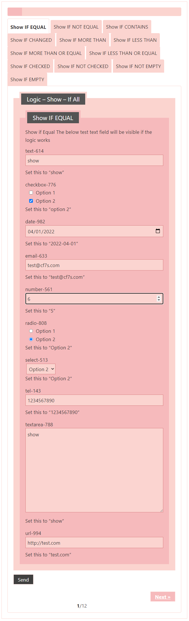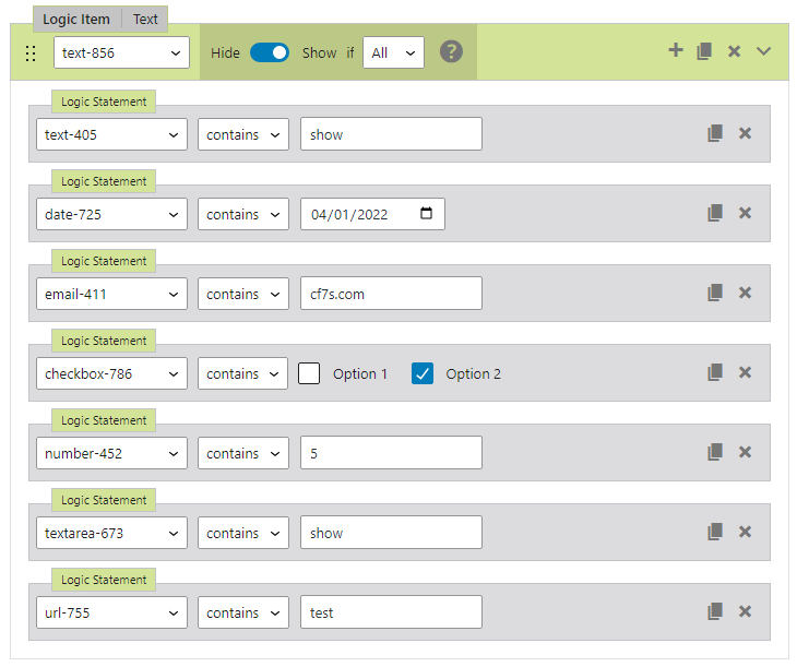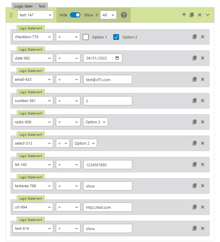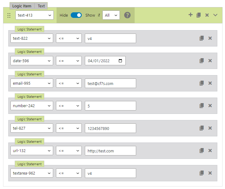 Frontend: Test – Field – If All – Show – Logic