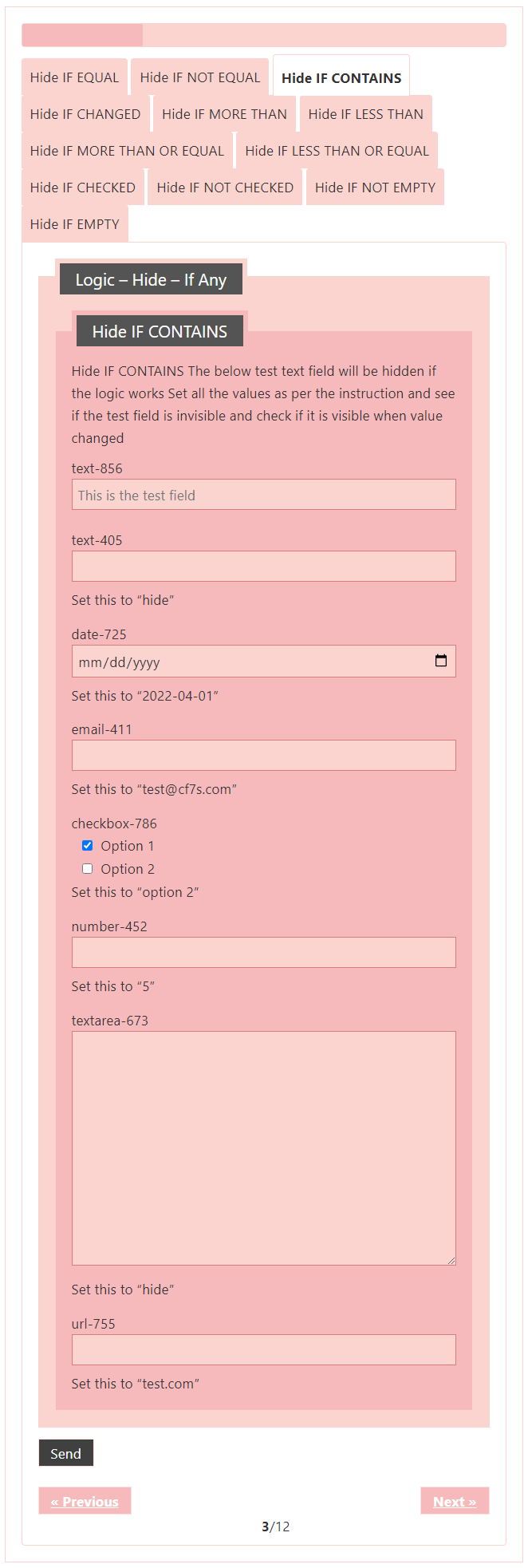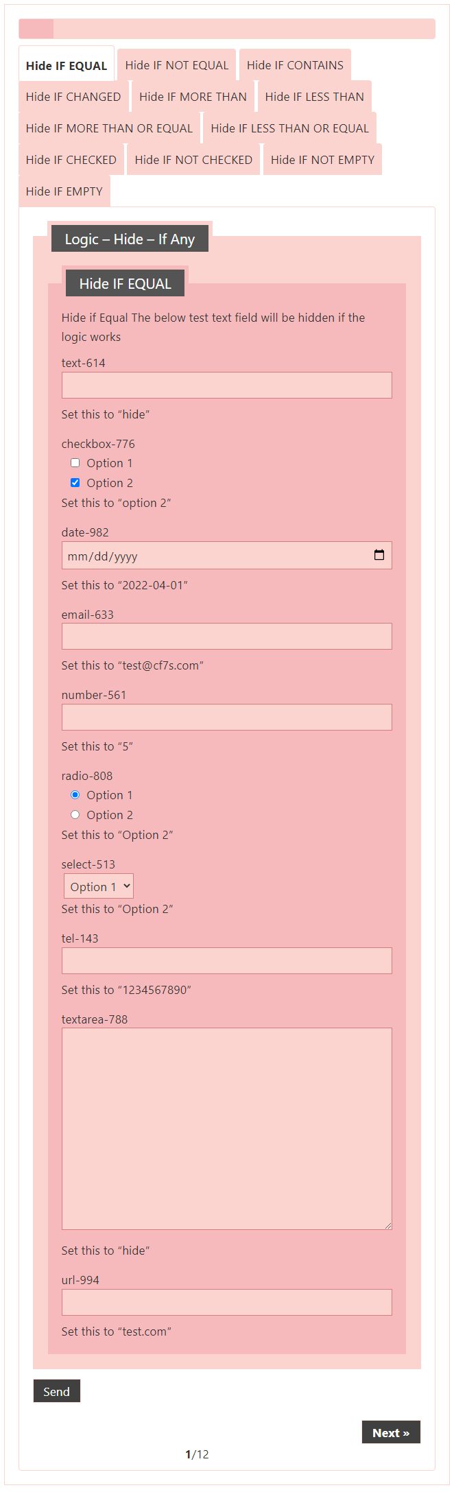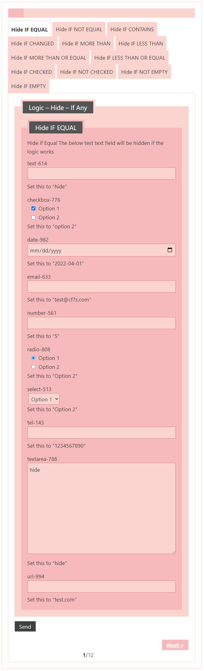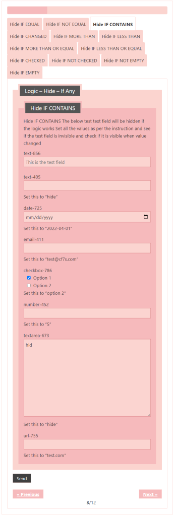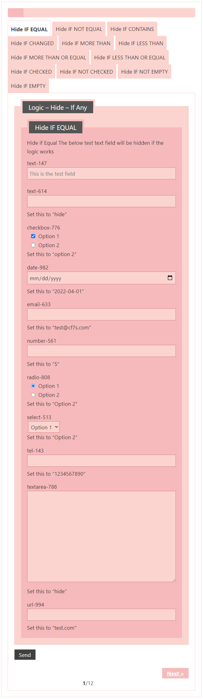 Logic – testing CF7 Skins Logic (both Backend & Frontend)