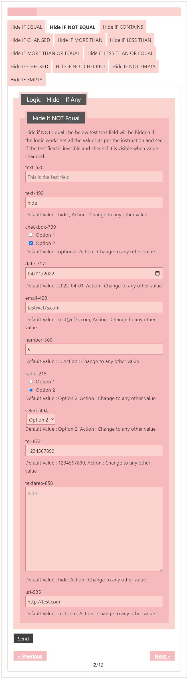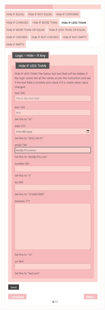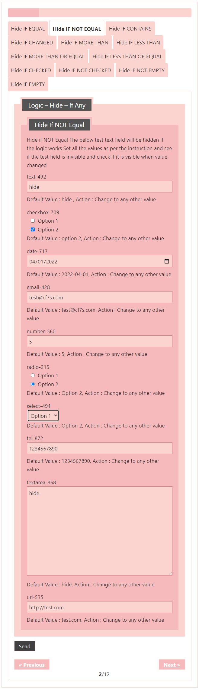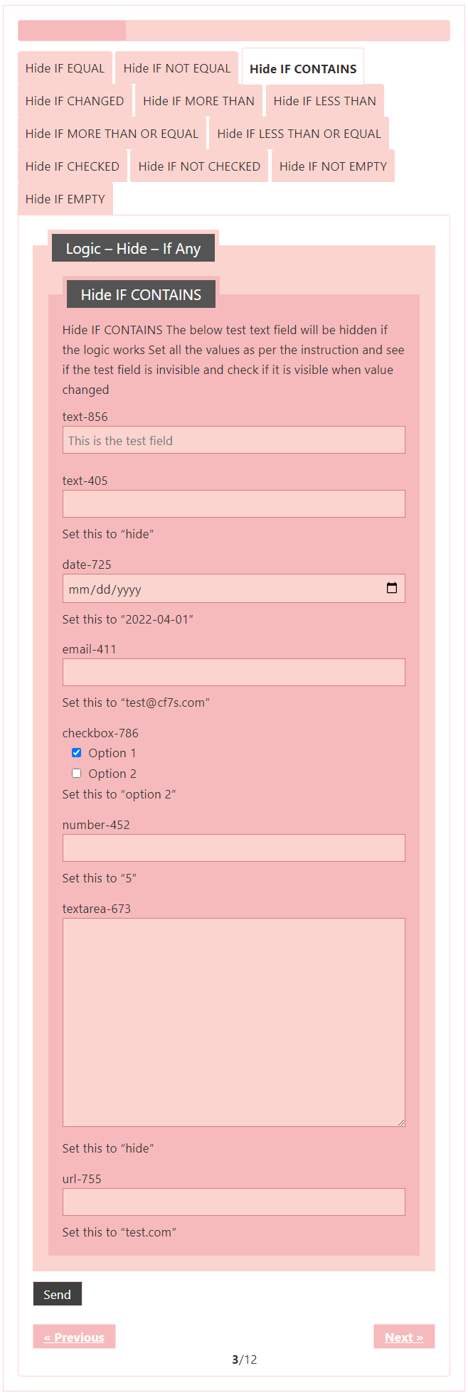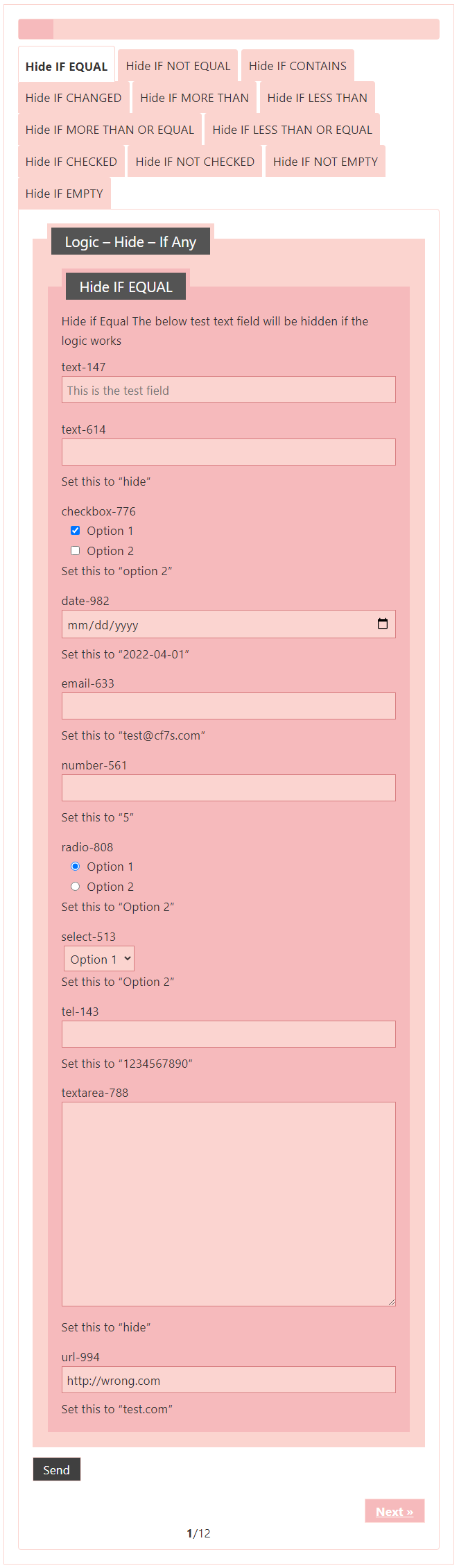 Logic – testing CF7 Skins Logic (both Backend & Frontend)