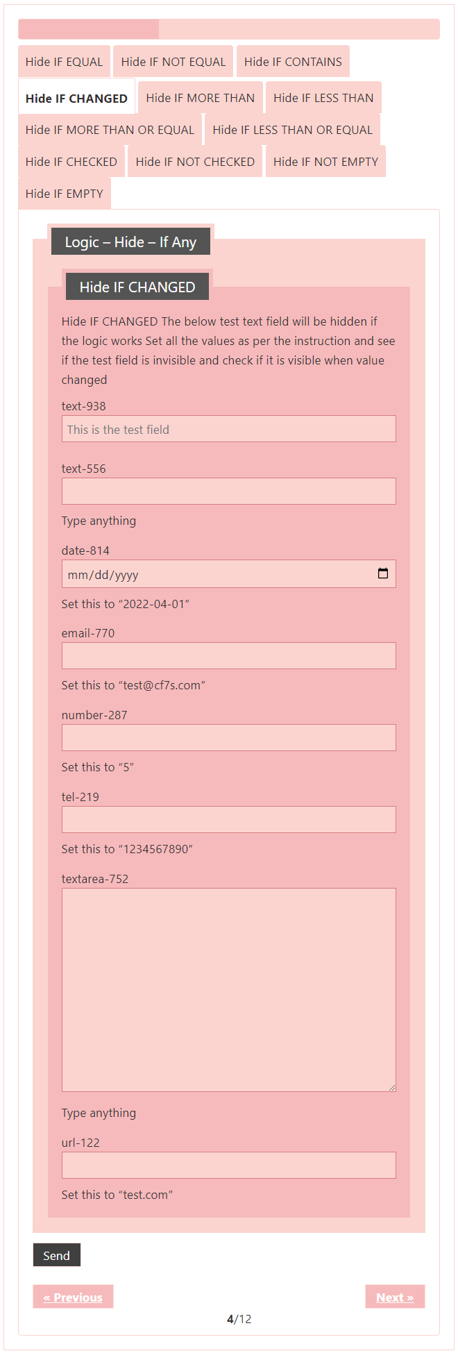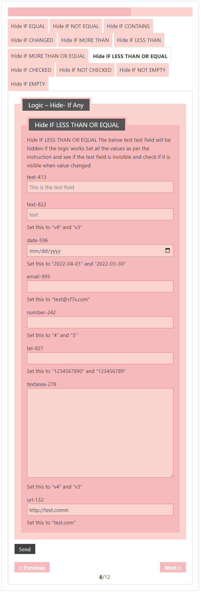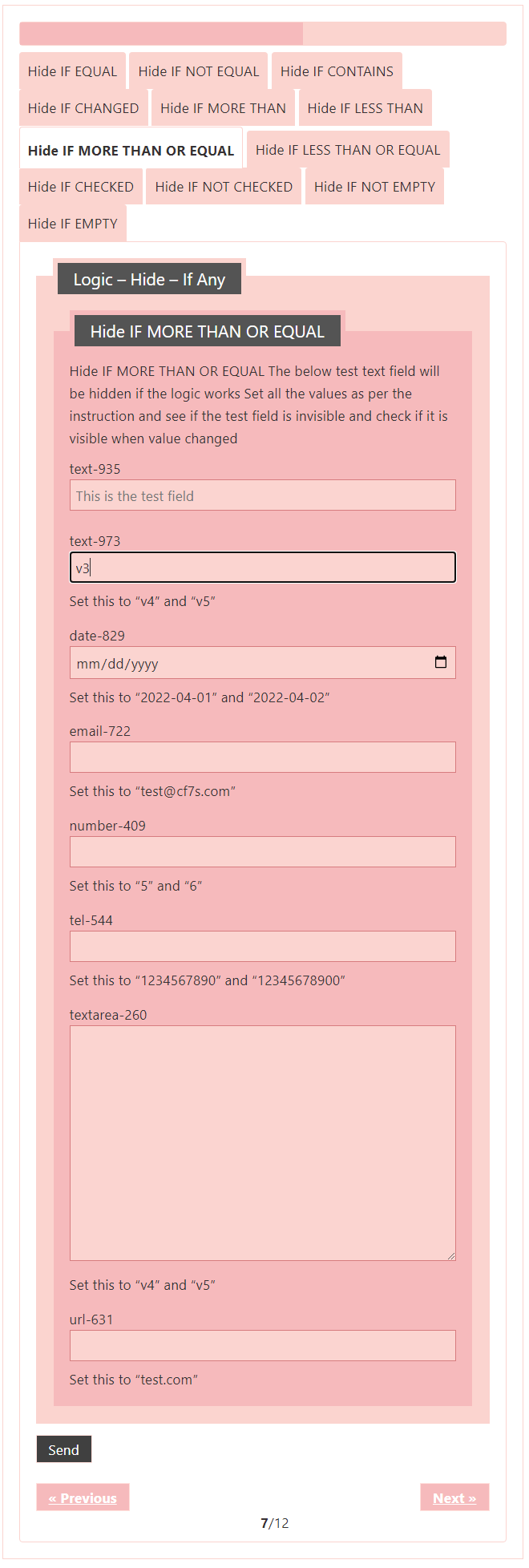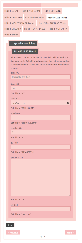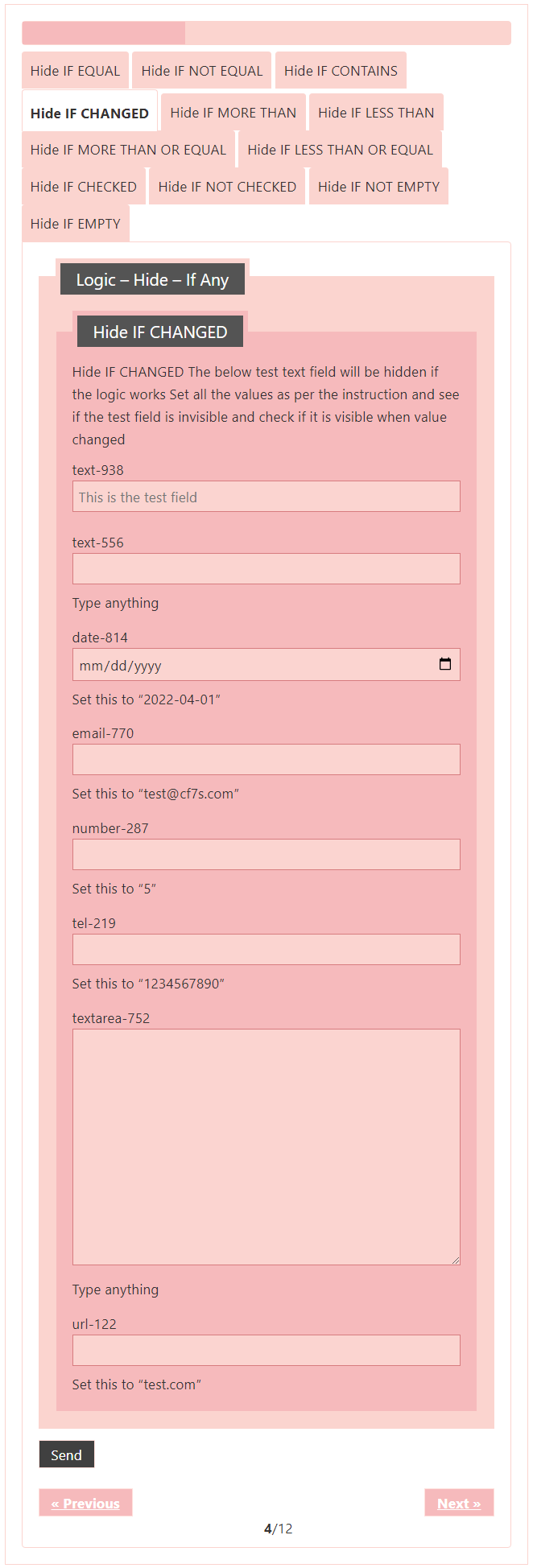 Logic – testing CF7 Skins Logic (both Backend & Frontend)