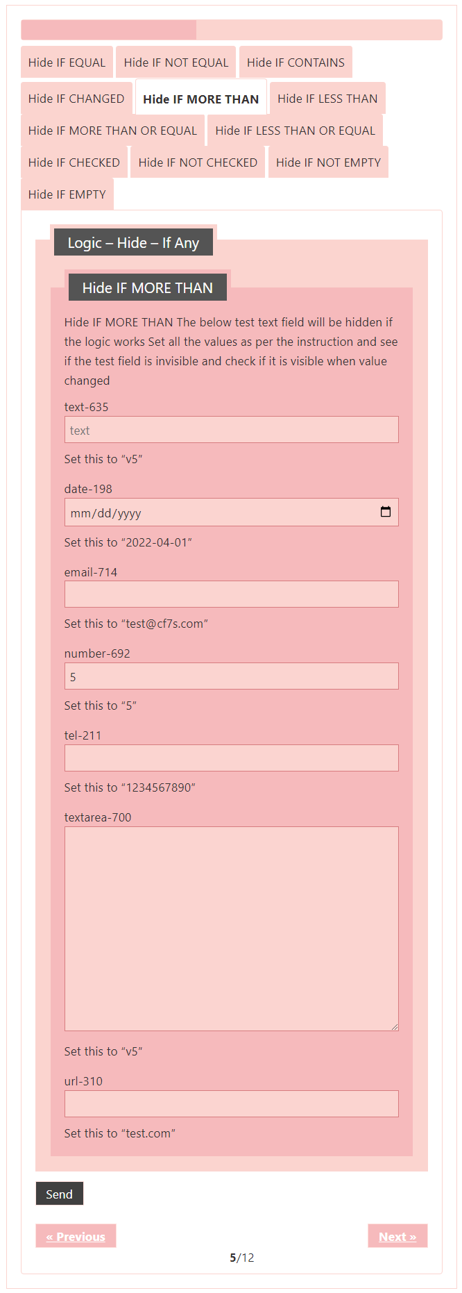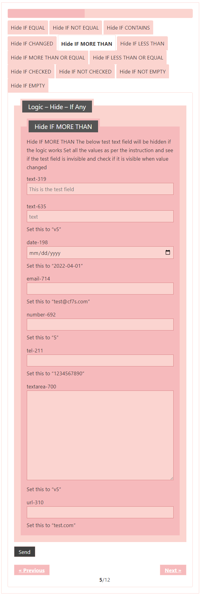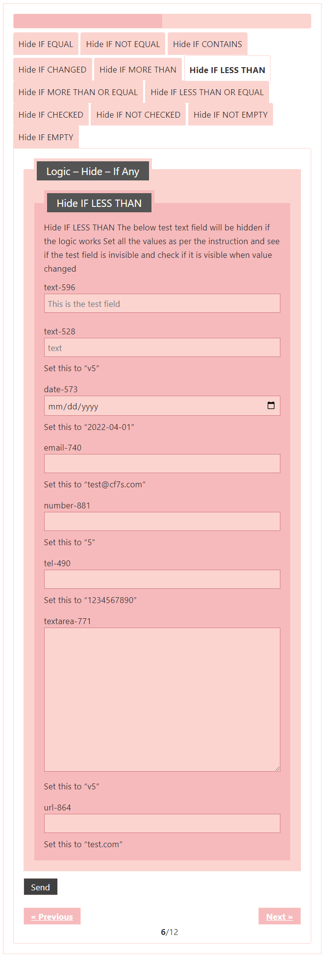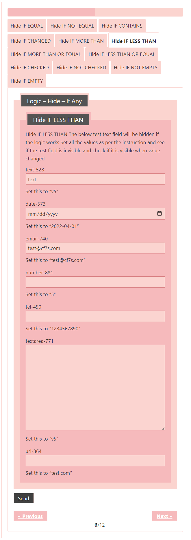 Logic – testing CF7 Skins Logic (both Backend & Frontend)