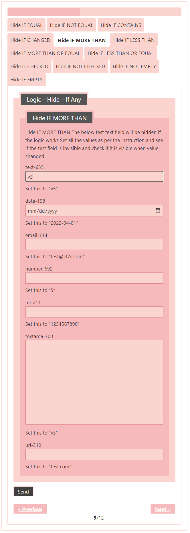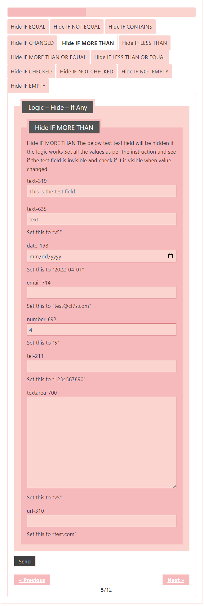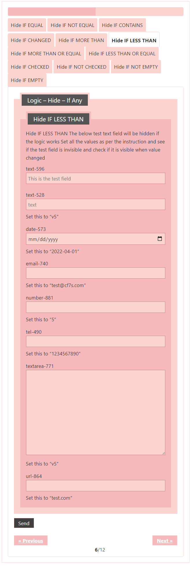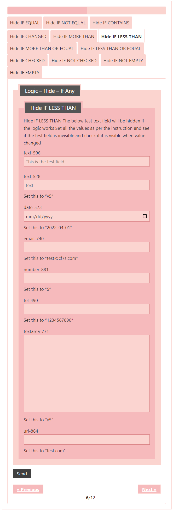 Logic – testing CF7 Skins Logic (both Backend & Frontend)