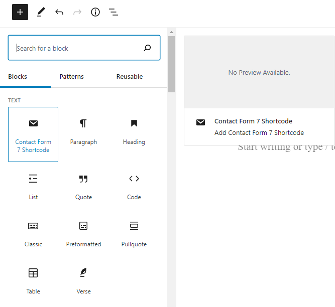 A. Add new Contact Form 7 Shortcode block.